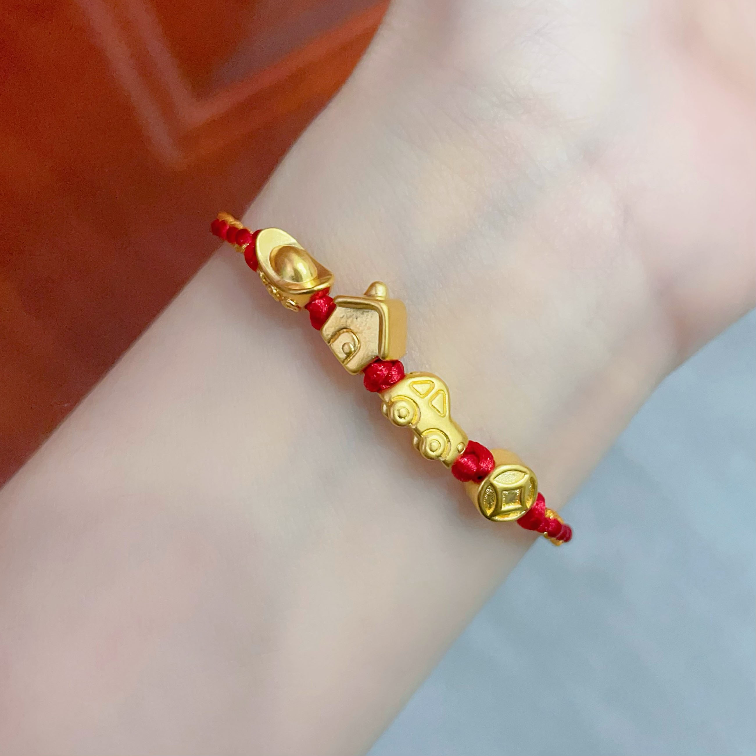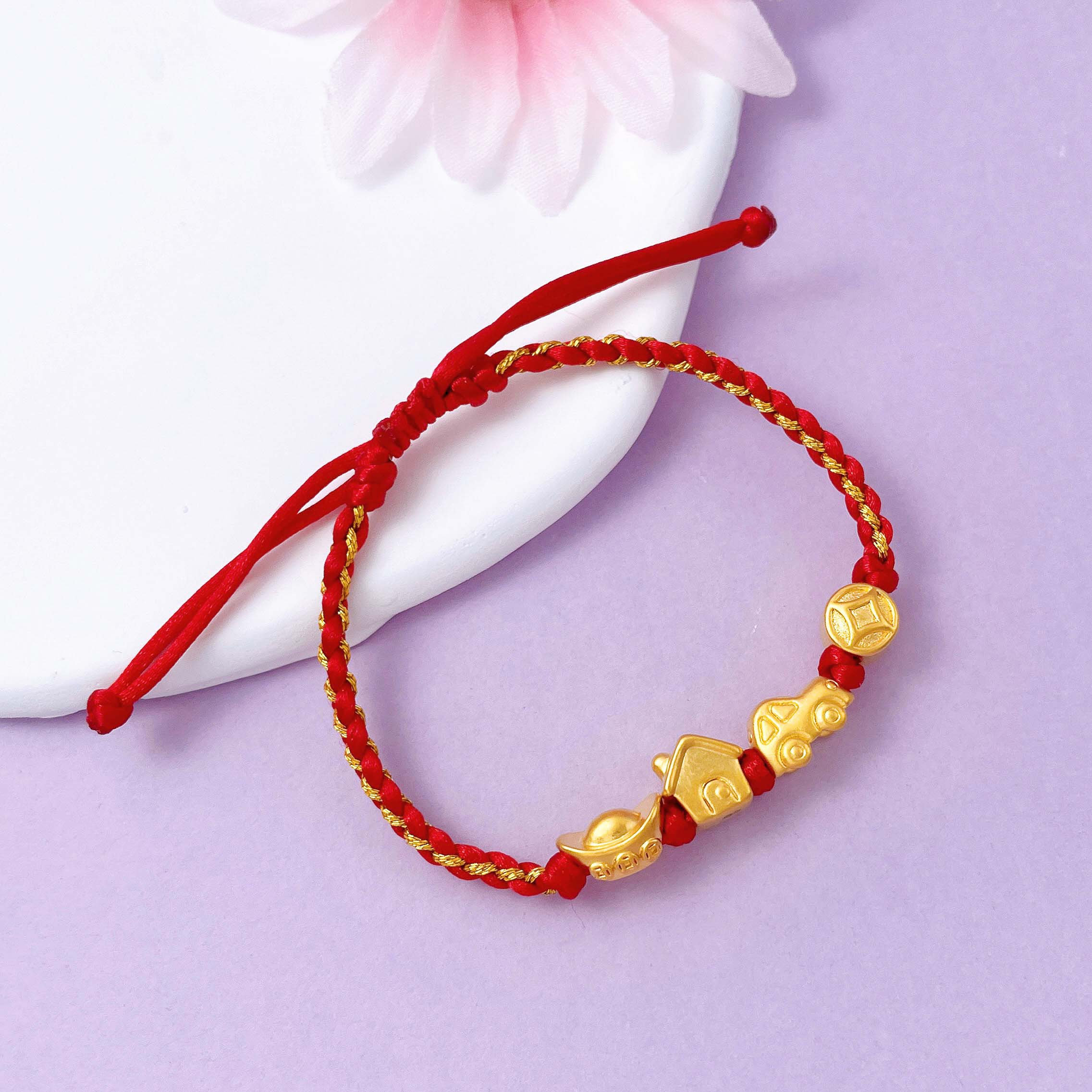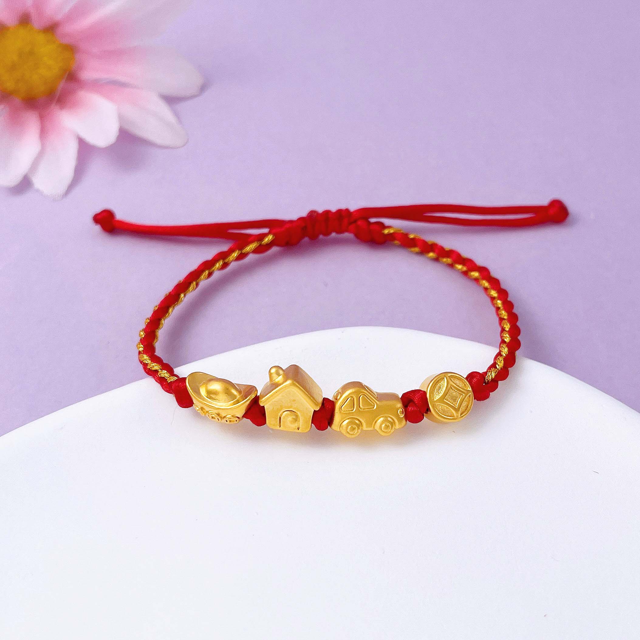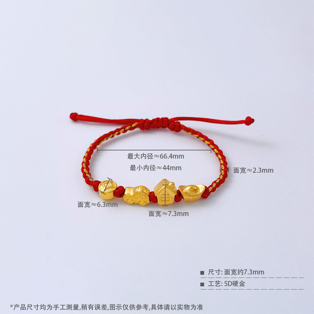 【限时7.5折】【定价黄金】足金 #儿童/宝宝 #无氰5D硬金豪车小金屋编织绳调节手链有房有车有钱花宝宝手绳(AA5DSC00069)【补手工费可以换新的绳子】(预售产品下单后不退款不退货不换货不补差