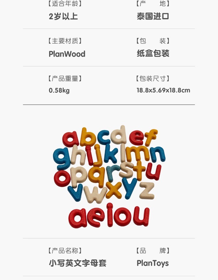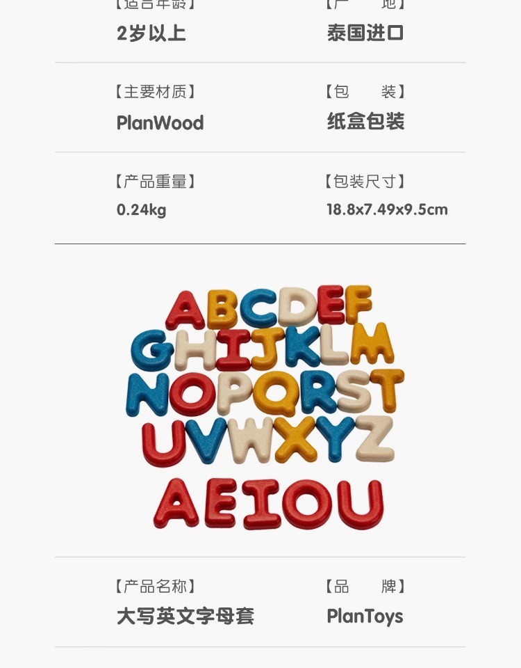 泰国Plantoys 数字加减法 大写英文字母套 小写英文字母套 蒙氏早教益智英文儿童木质玩具学习板礼物 2岁+