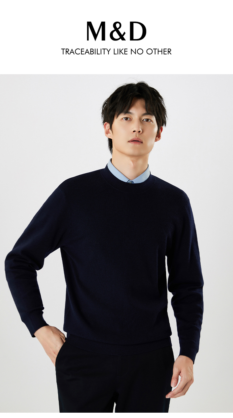 MD名盾男士长袖圆领t恤打底羊毛衫秋季新品保暖商务休闲套头衫男