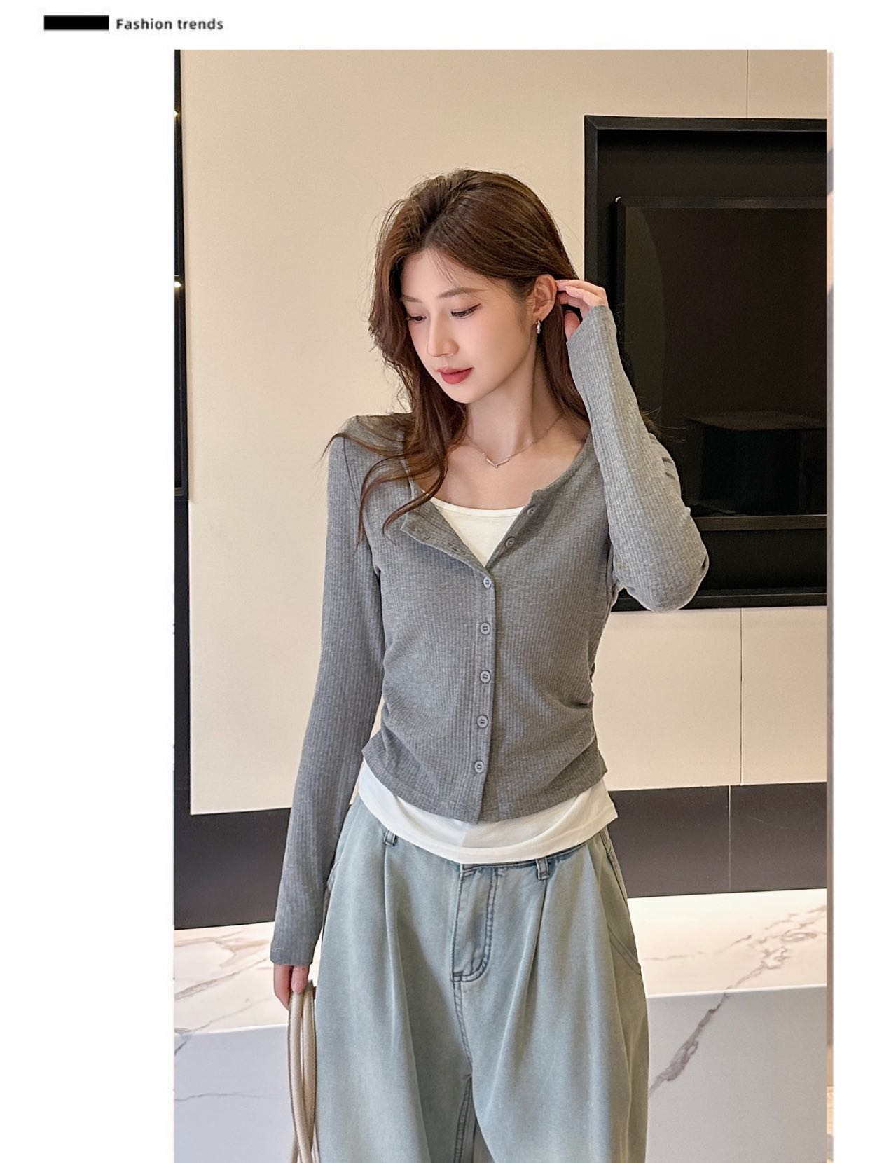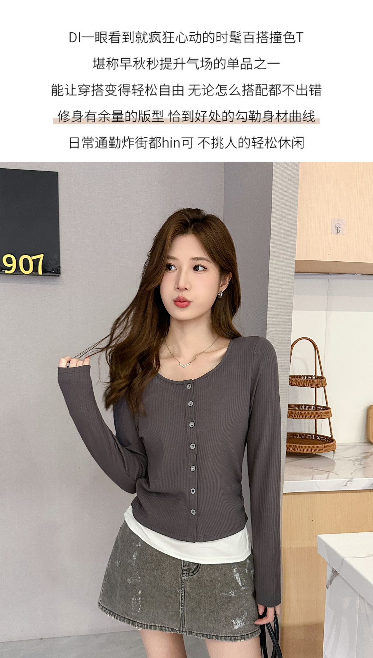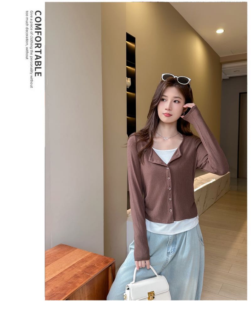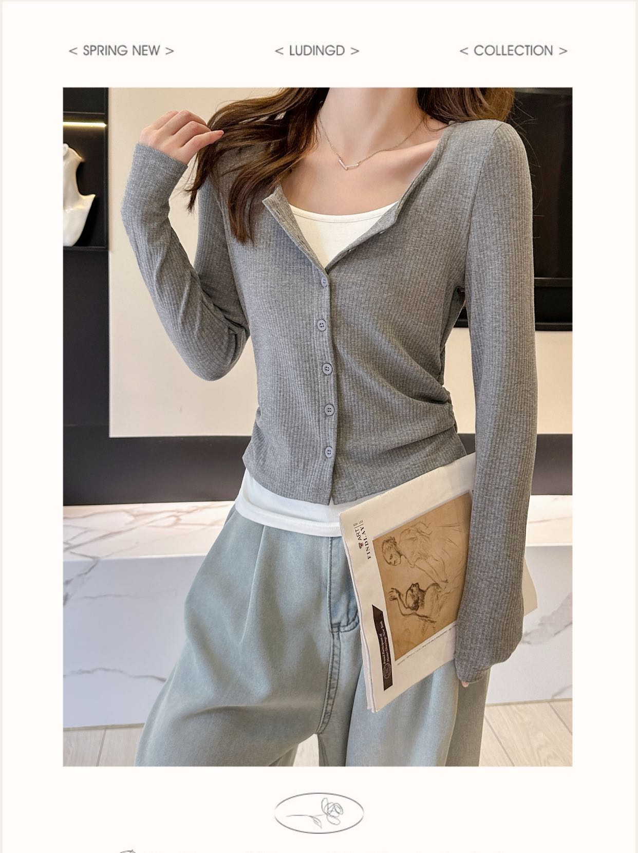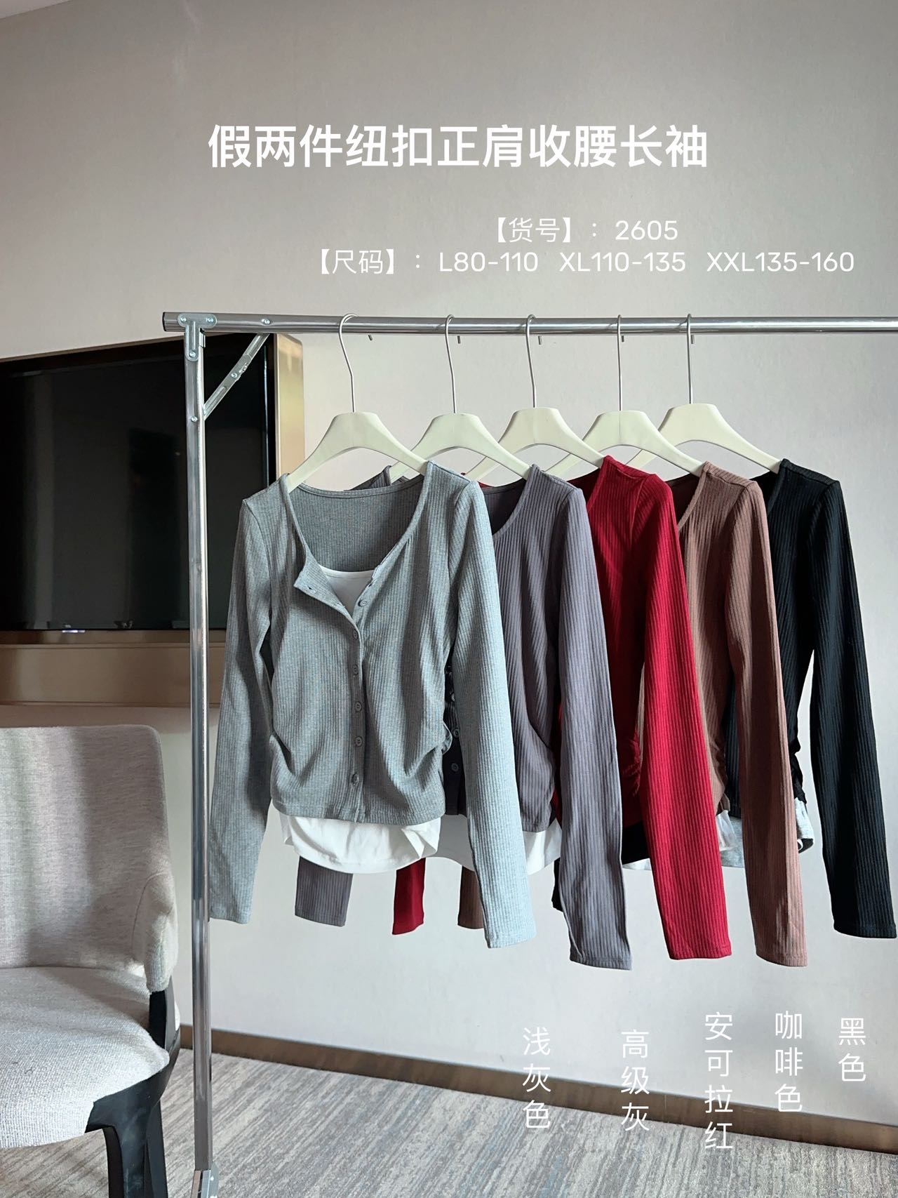 【名称】:青乔慕染假两件纽扣正肩收腰长袖 2605
