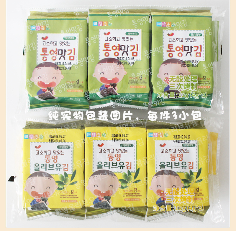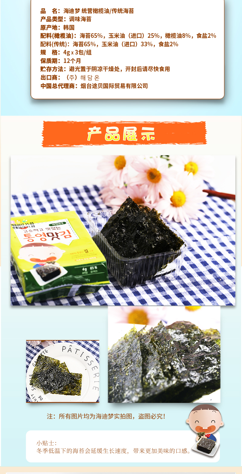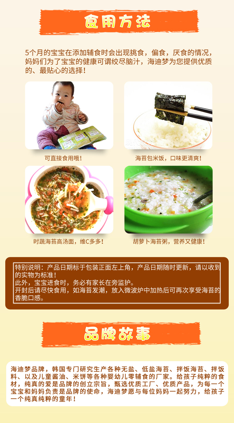 韩国进口宝宝海苔海迪梦儿童即食零辅食拌饭紫菜钠含量低3小袋