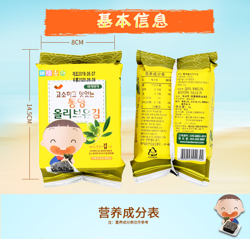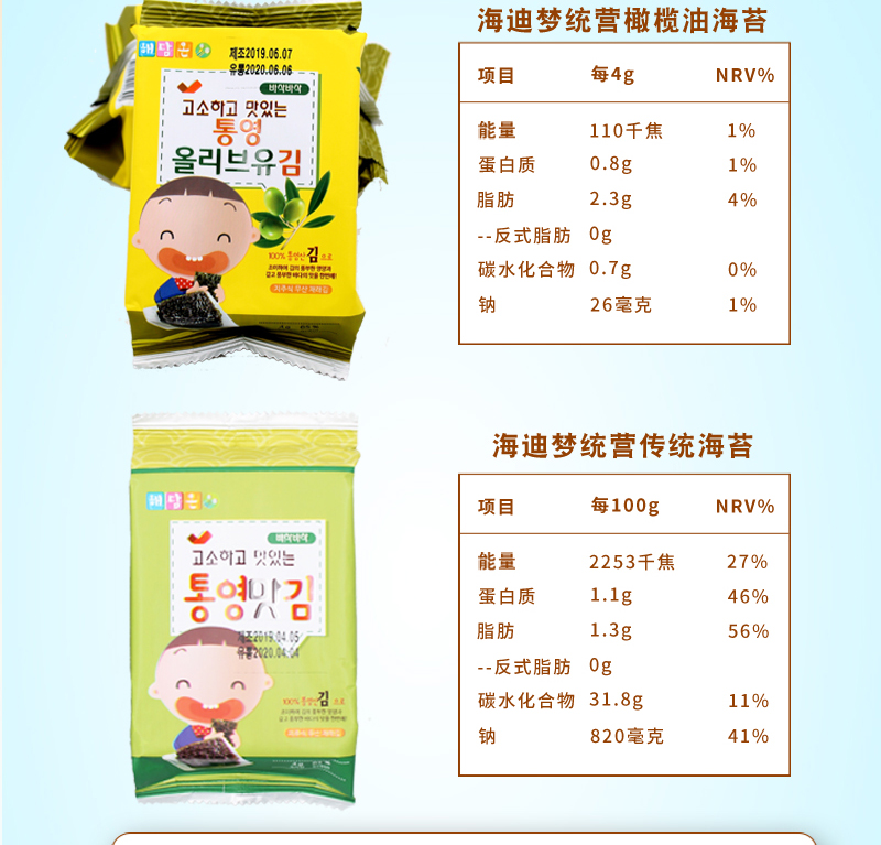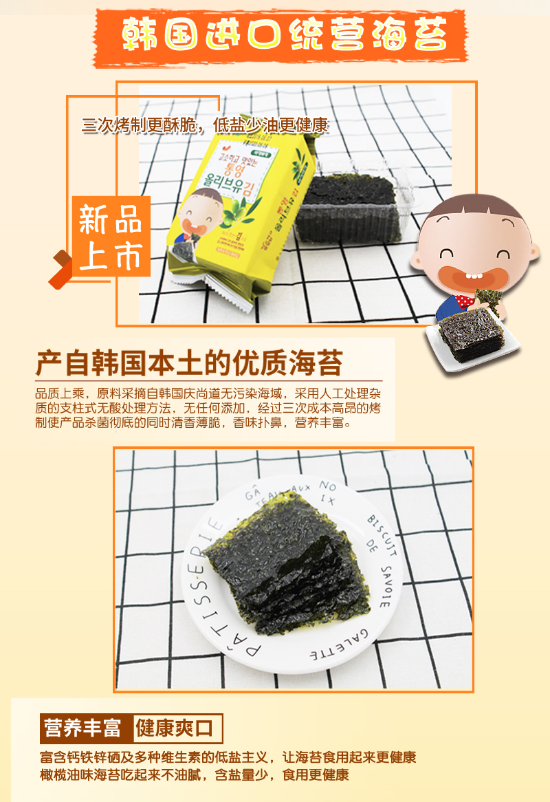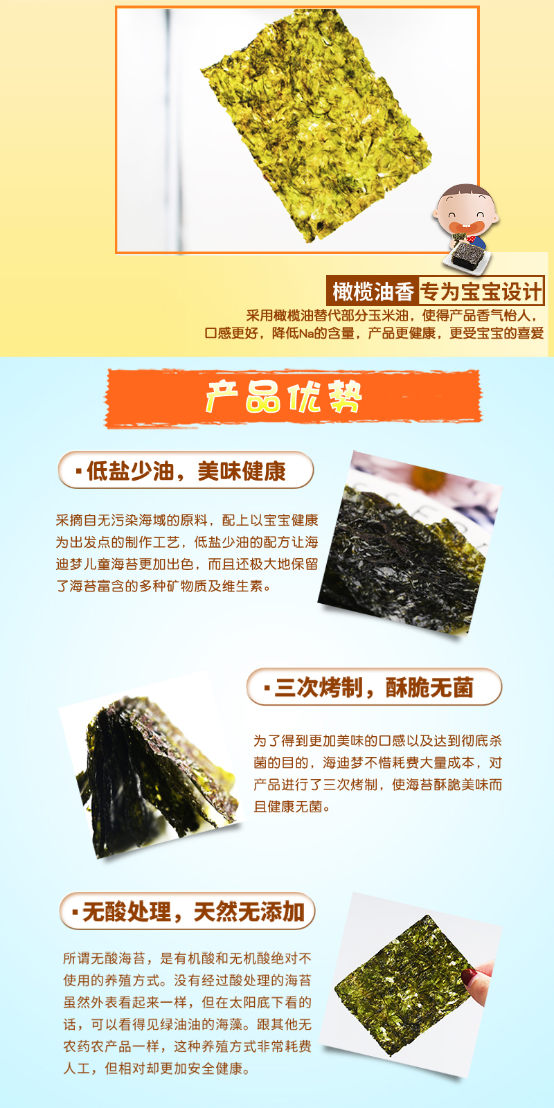 韩国进口宝宝海苔海迪梦儿童即食零辅食拌饭紫菜钠含量低3小袋