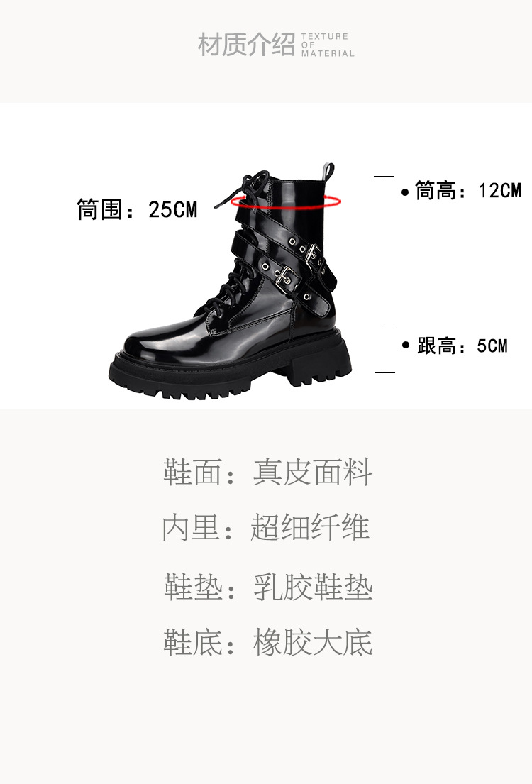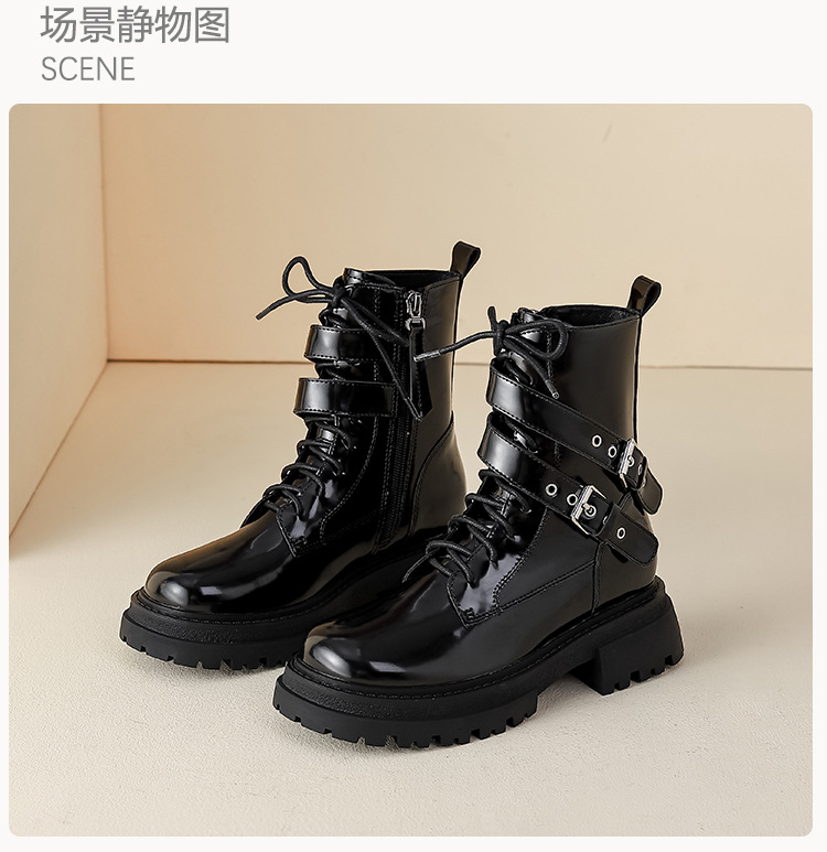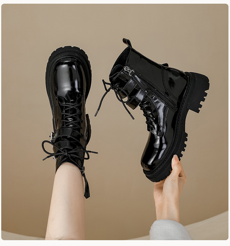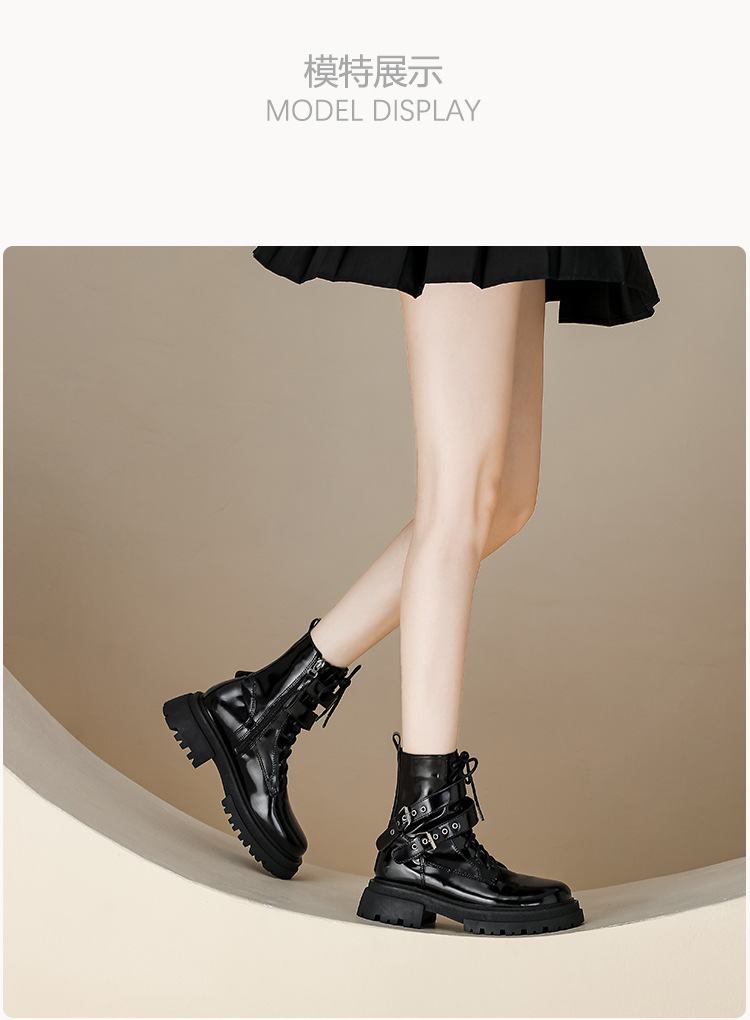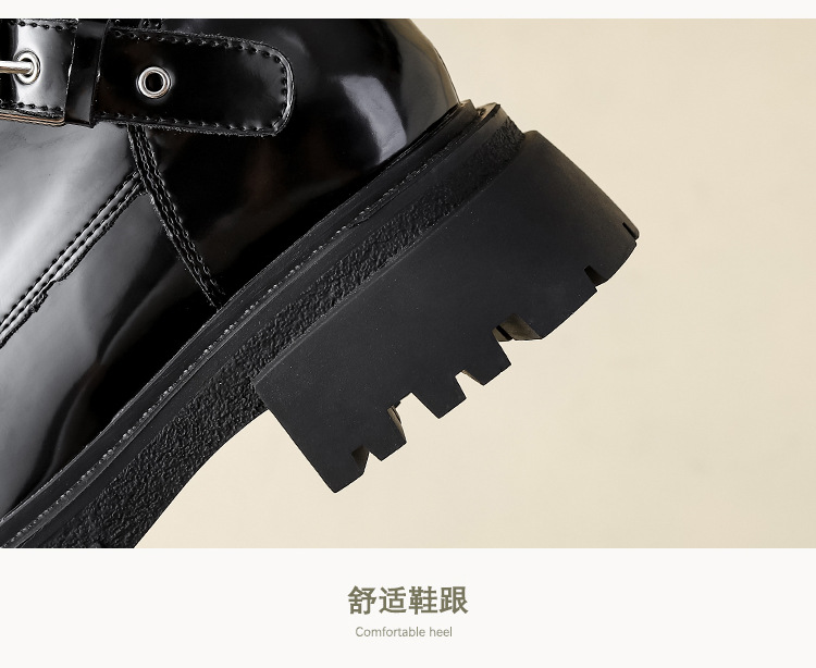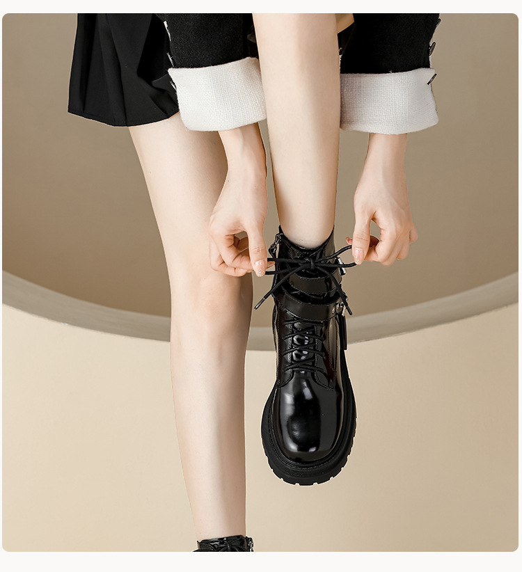 【女鞋专场】厚底漆皮马丁靴女款2023年新款秋冬英伦风真皮高级感粗跟短靴子女