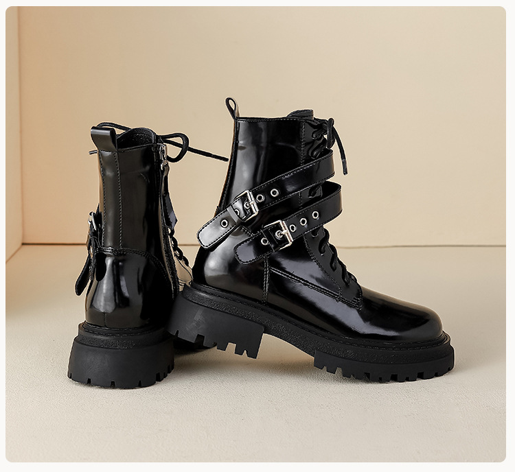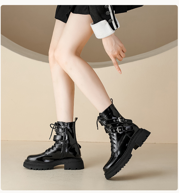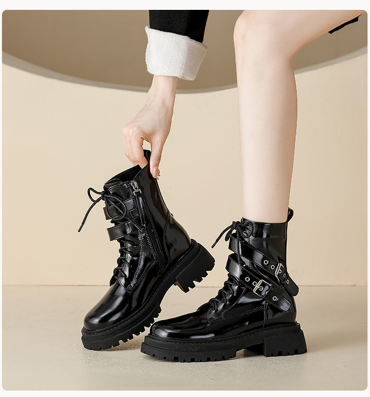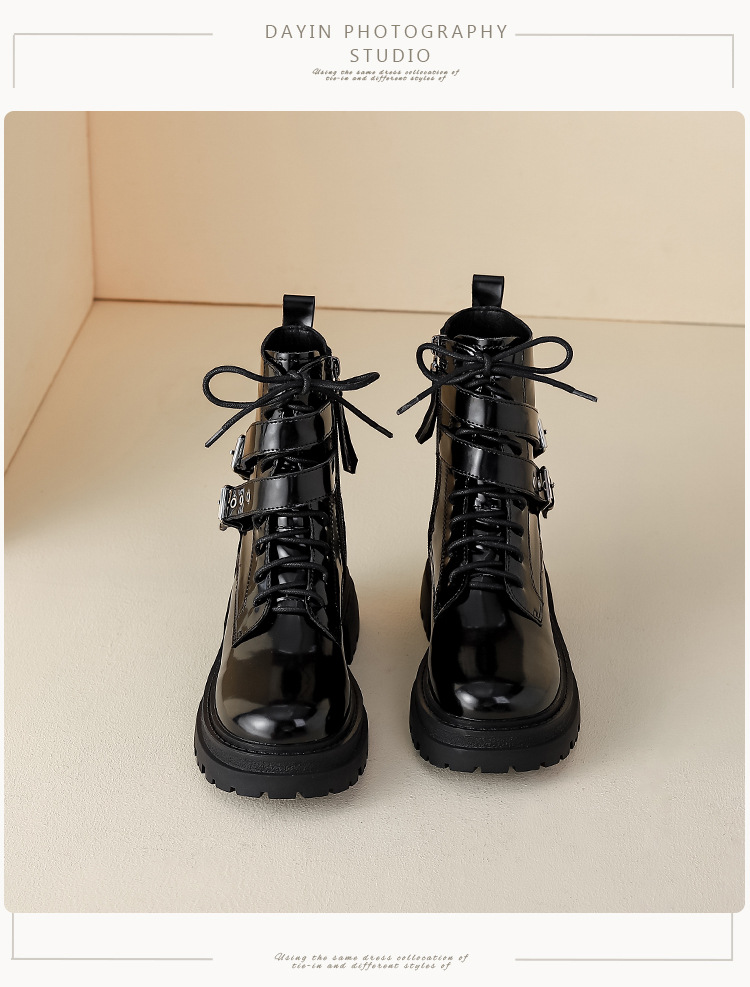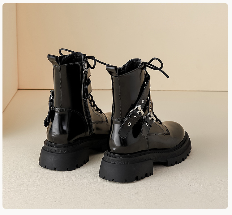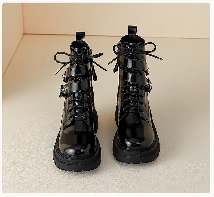 【女鞋专场】厚底漆皮马丁靴女款2023年新款秋冬英伦风真皮高级感粗跟短靴子女