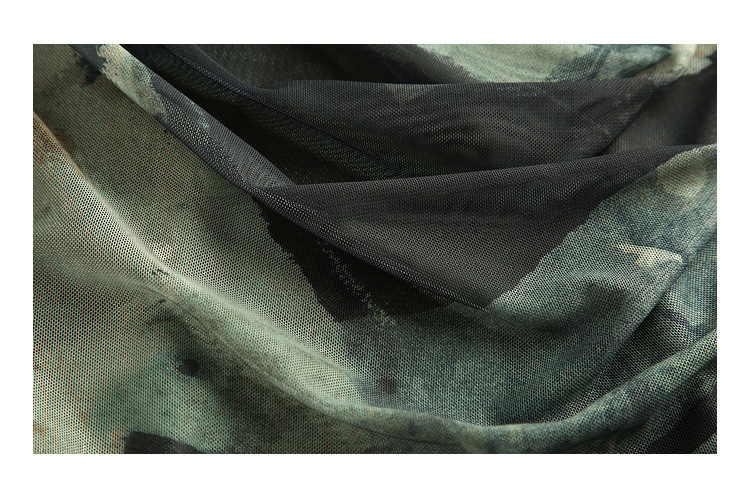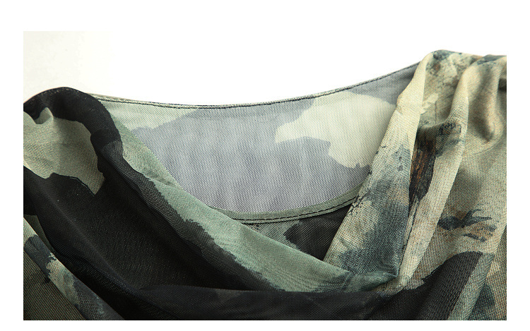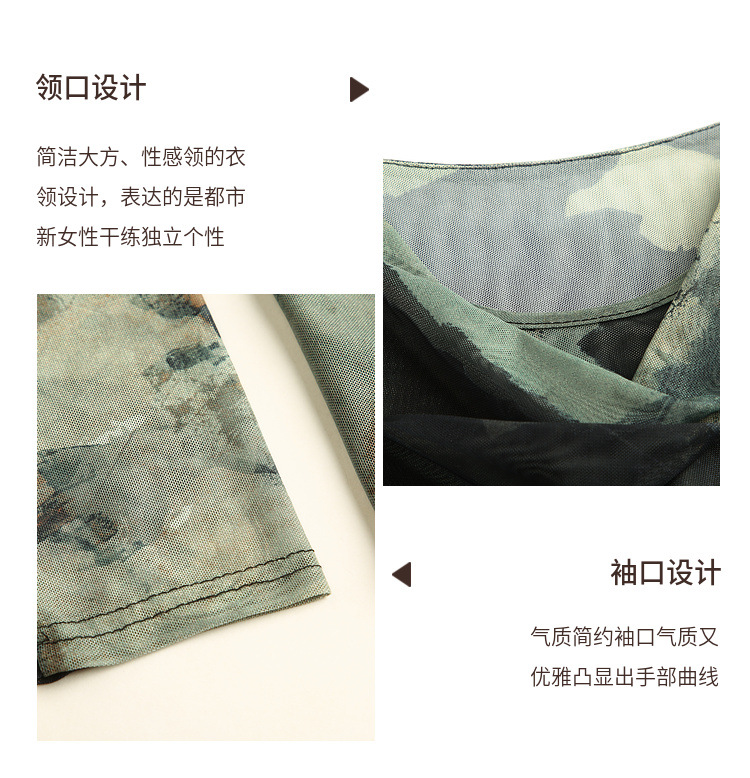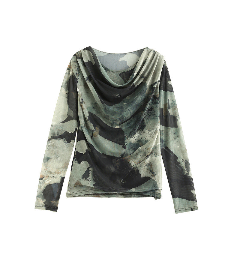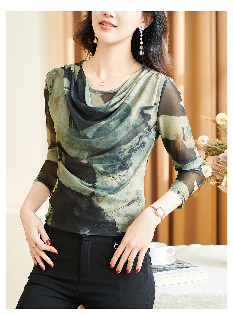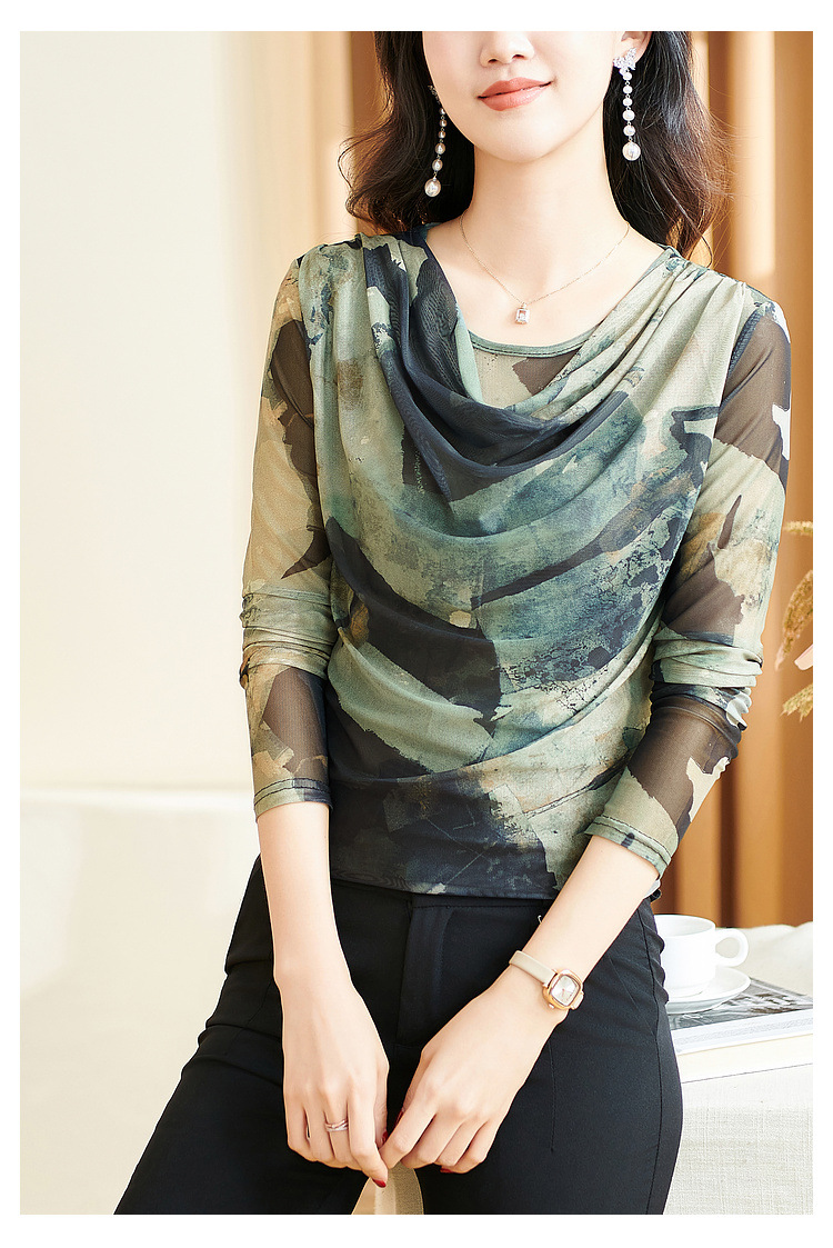 秋网纱印花圆领时尚打底衫,堆堆领修身显瘦长袖T恤KQL-E001M6853