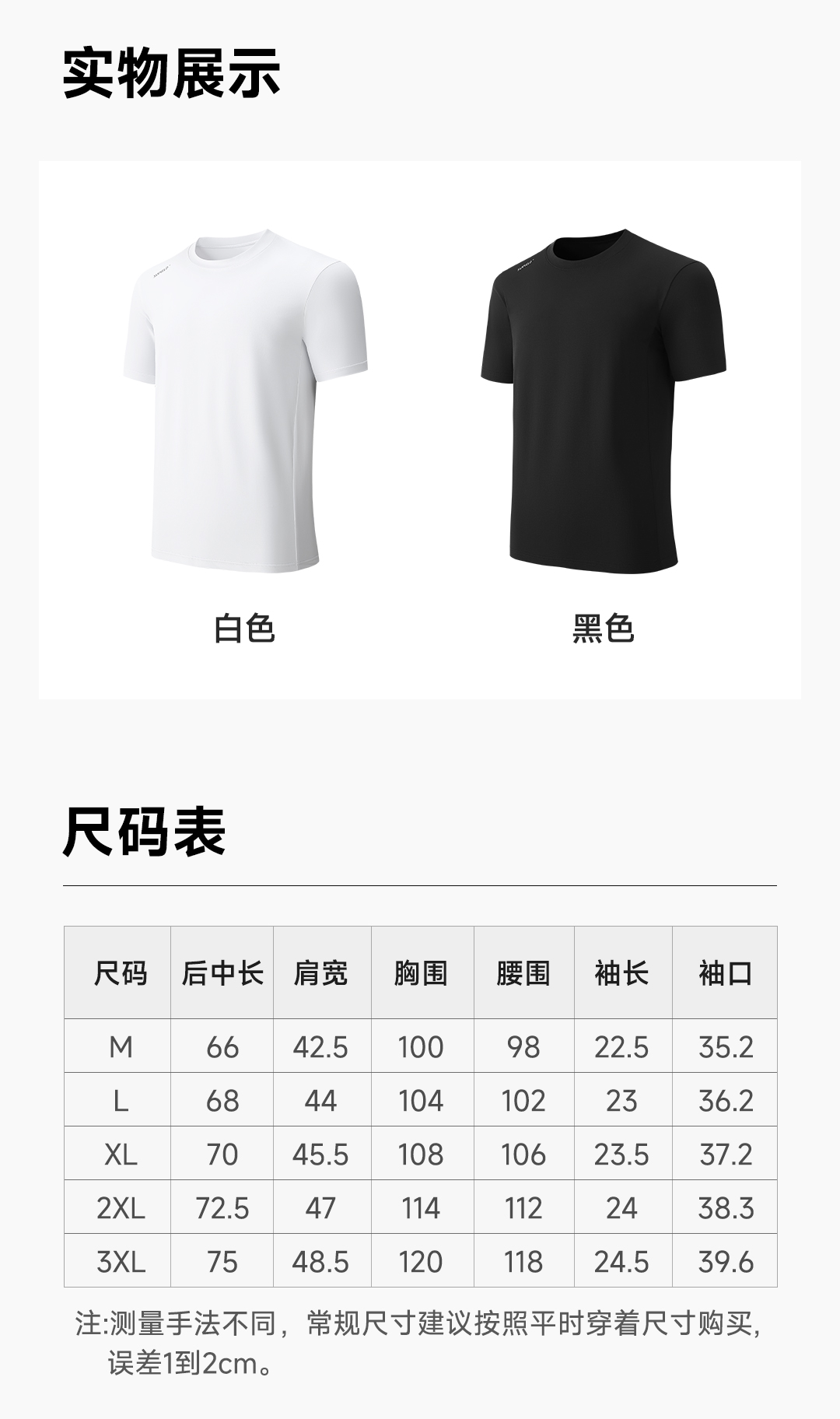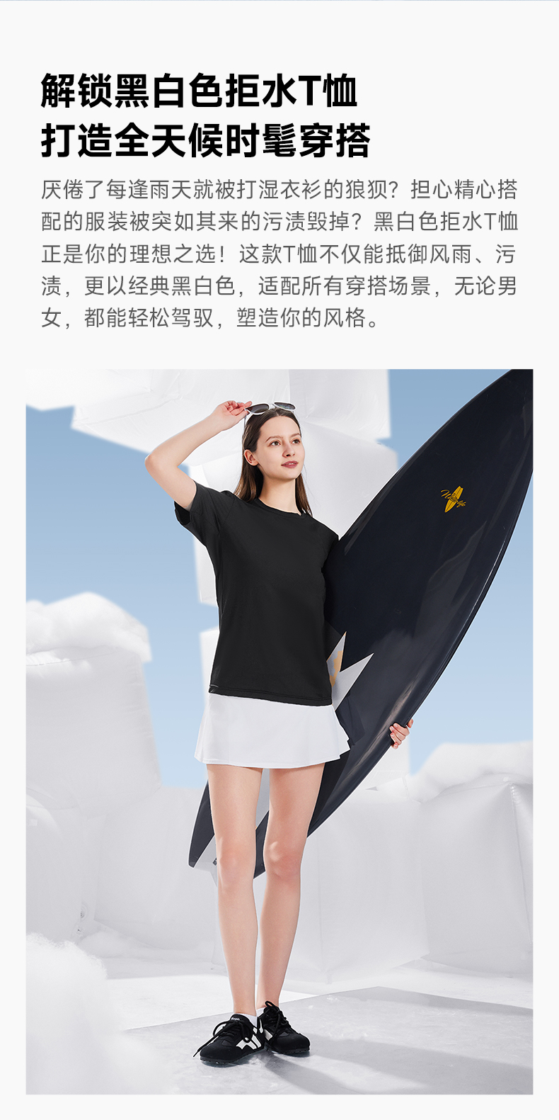 素湃Supield防水防污T恤男女夏季薄款凉感立体剪裁高弹力短袖T恤H3536