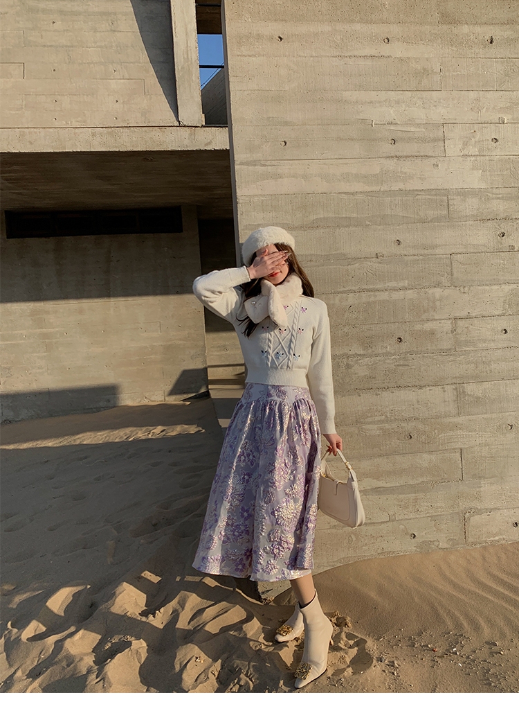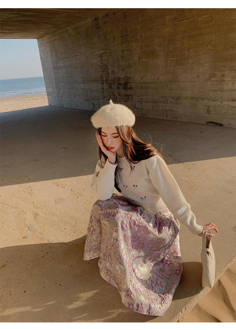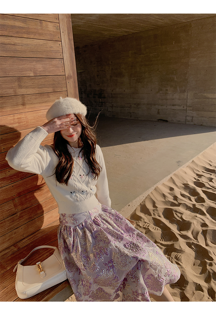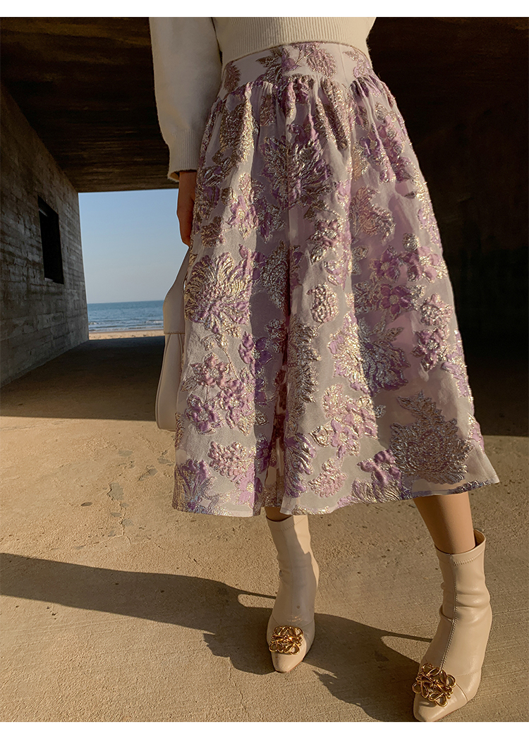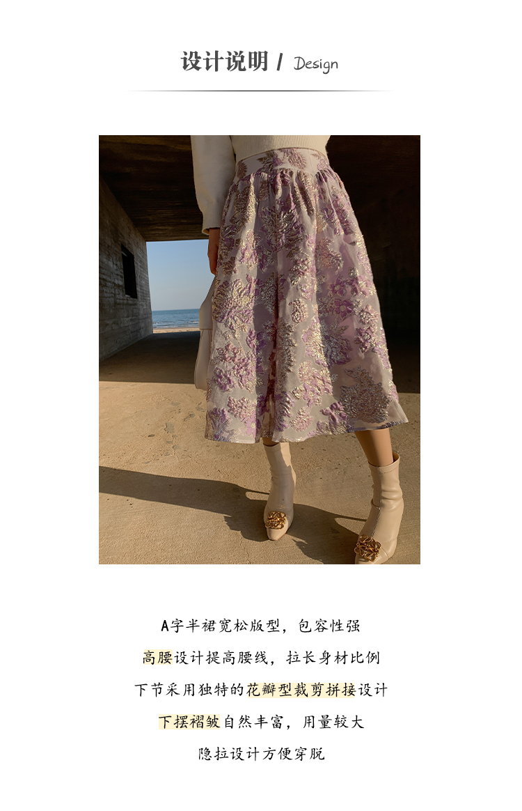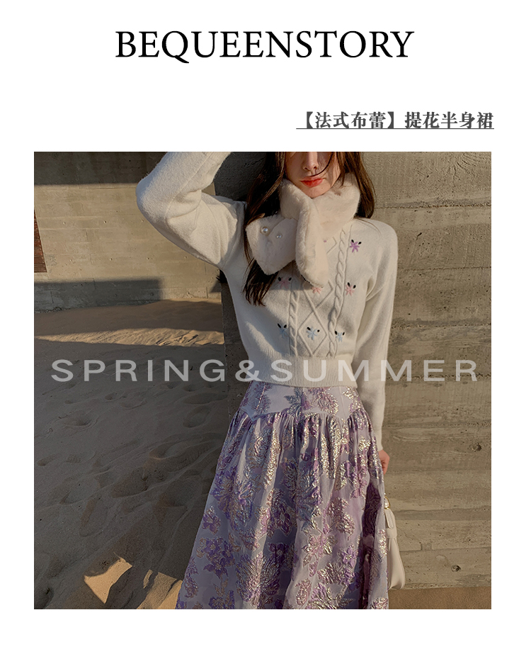 BeQueenStory 【法式布蕾】甜美刺绣提花A字半裙