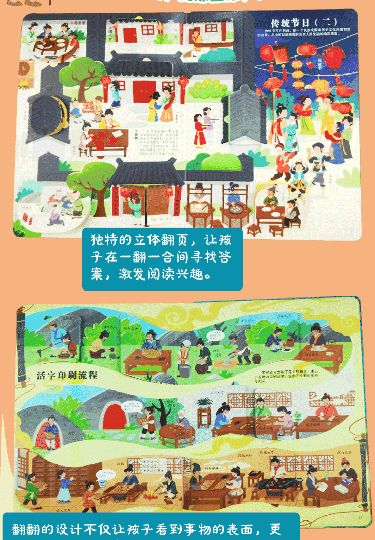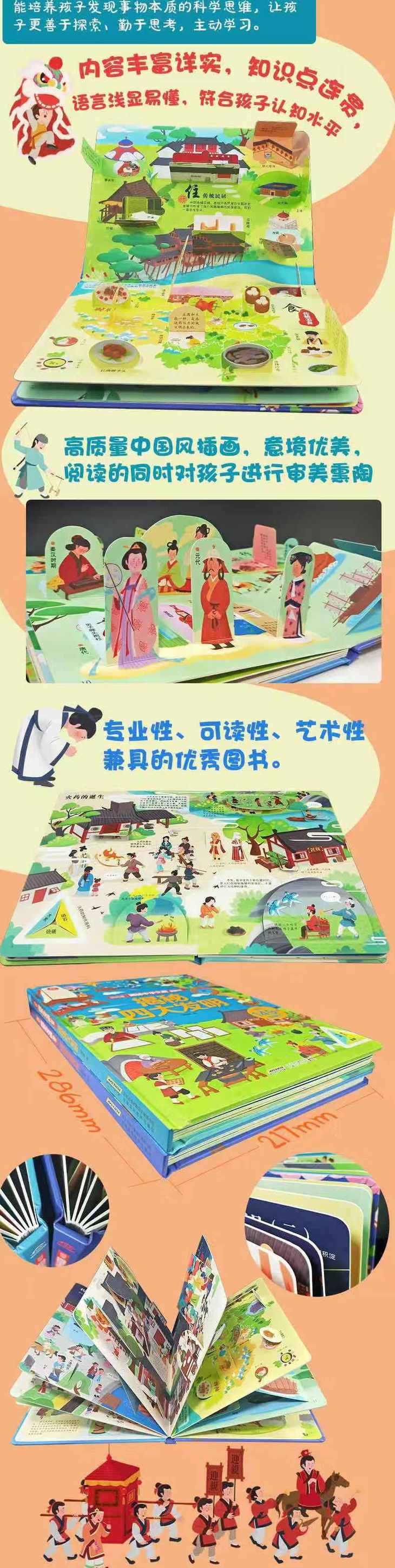 揭秘中华文明翻翻书3d立体书全2册儿童图画玩具书启蒙情景认知益智幼儿园撕不烂早教书宝宝故事书0-3-6周岁亲子互动阅读故事绘本