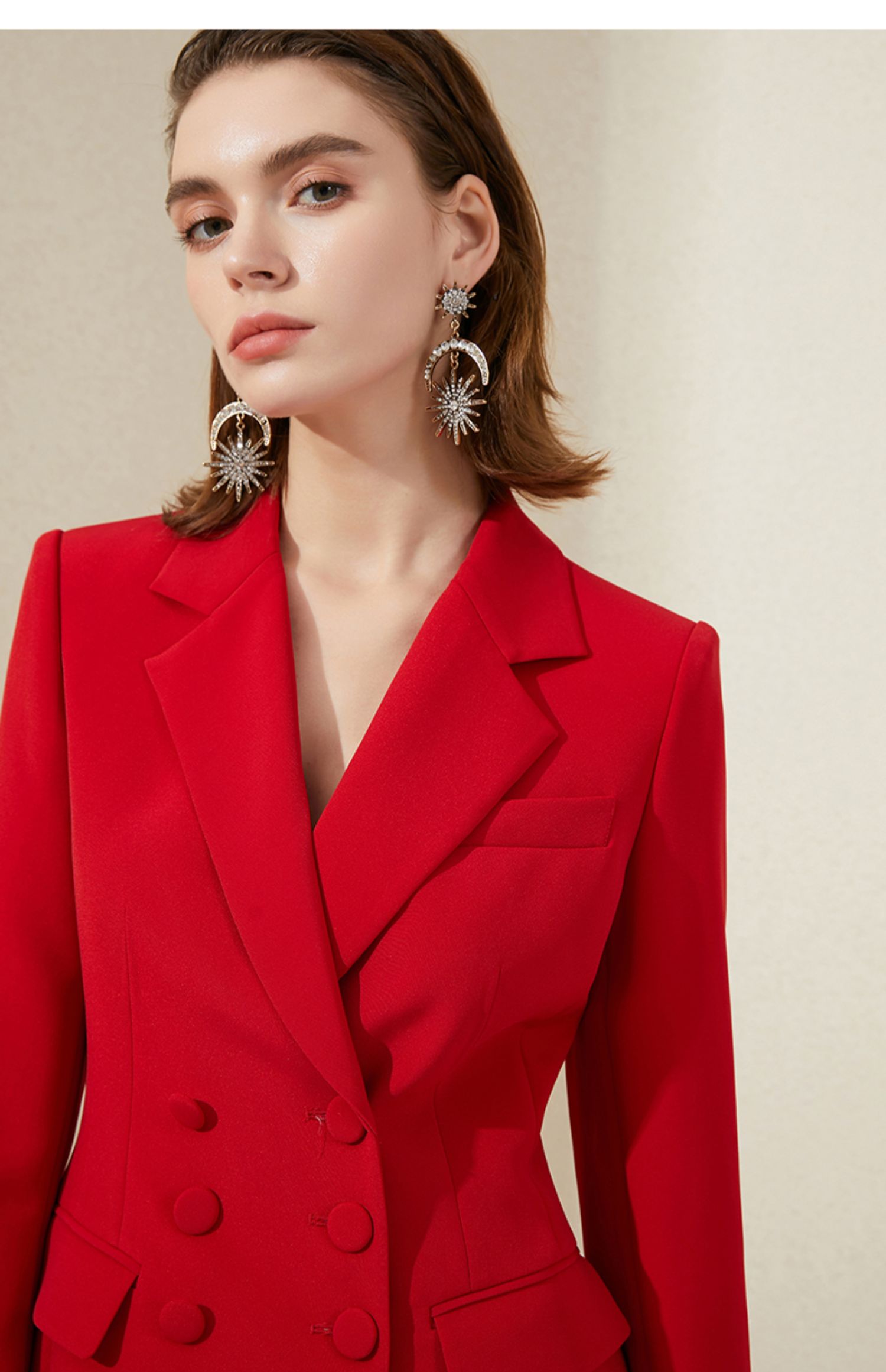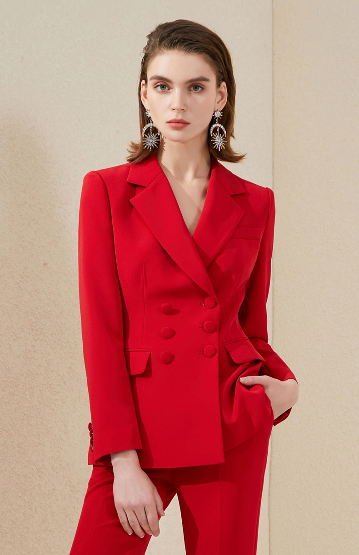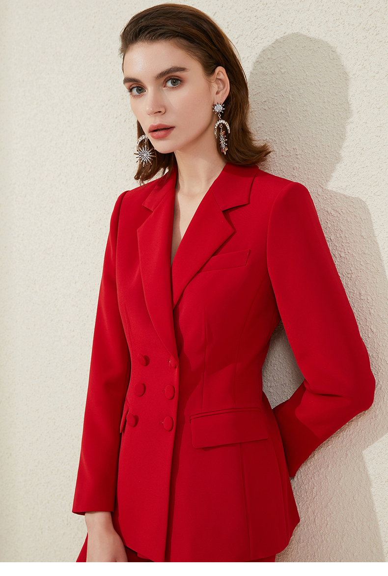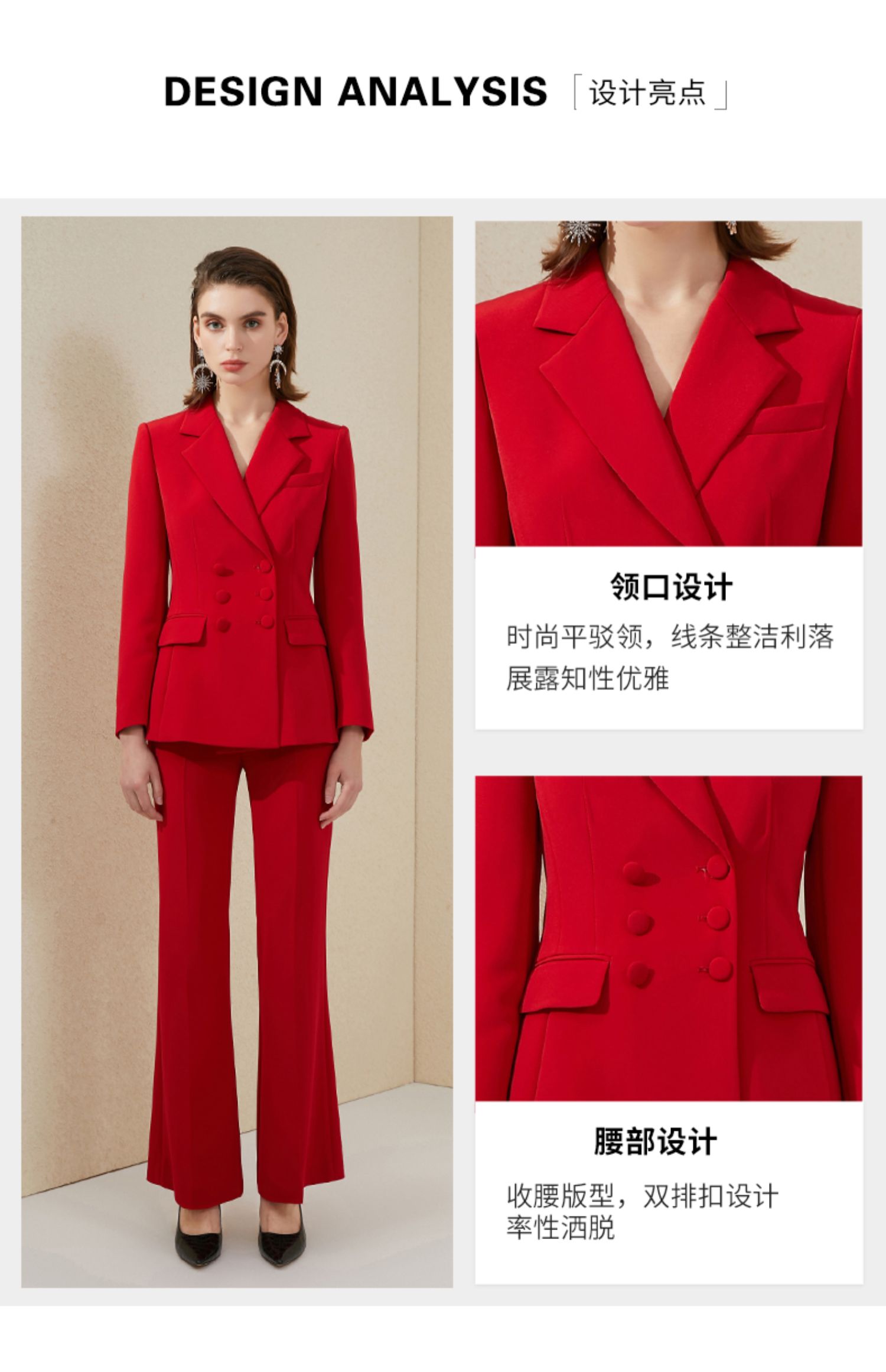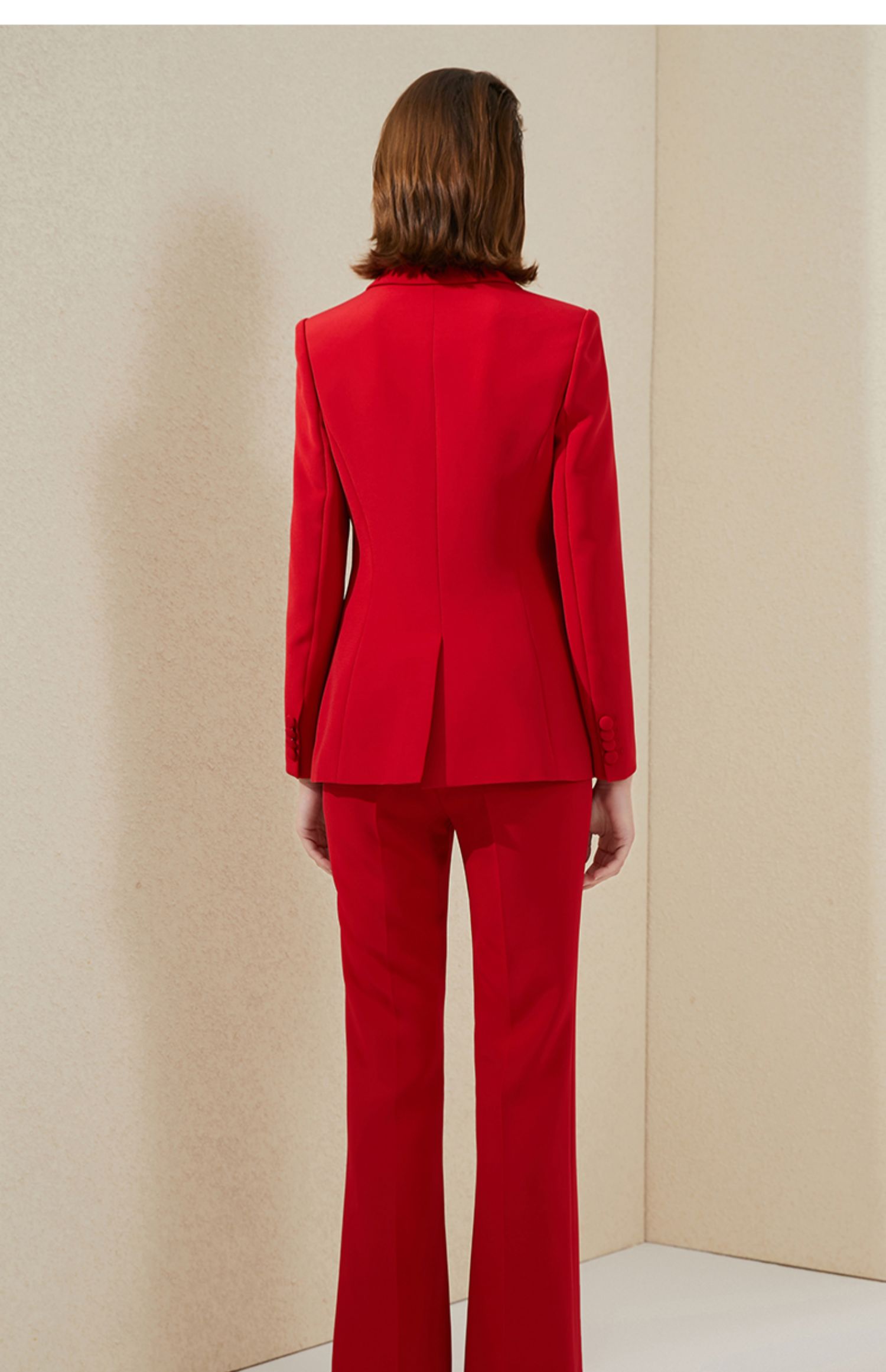 IWY/大红色西服职业装高端经理西装套装女微喇裤气质商务宴会正装 213163C1+P3