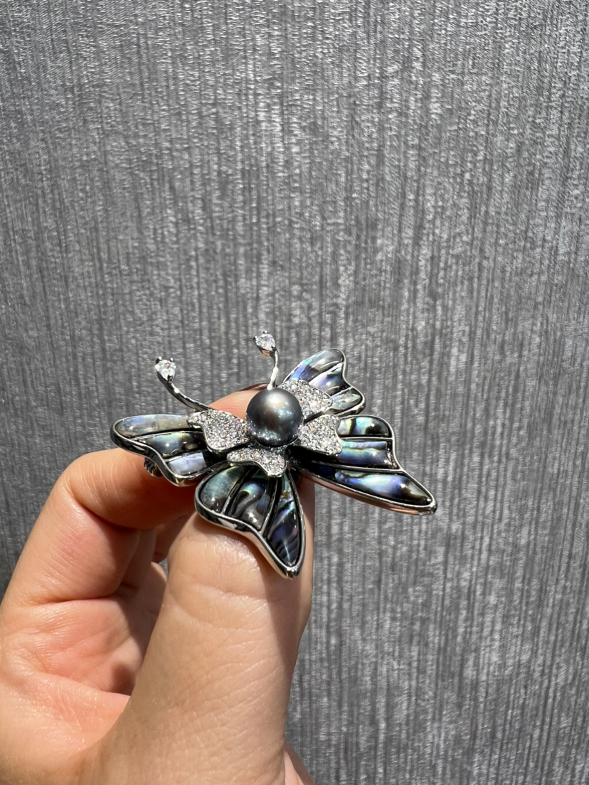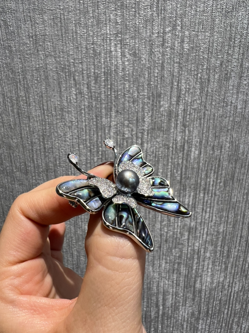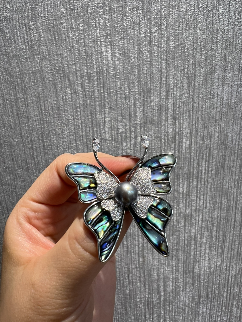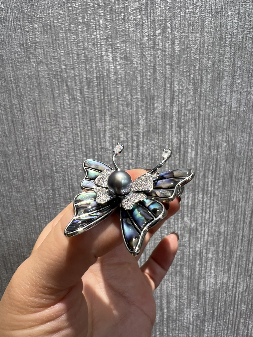 彩贝蝴蝶🦋大溪地珍珠胸针。