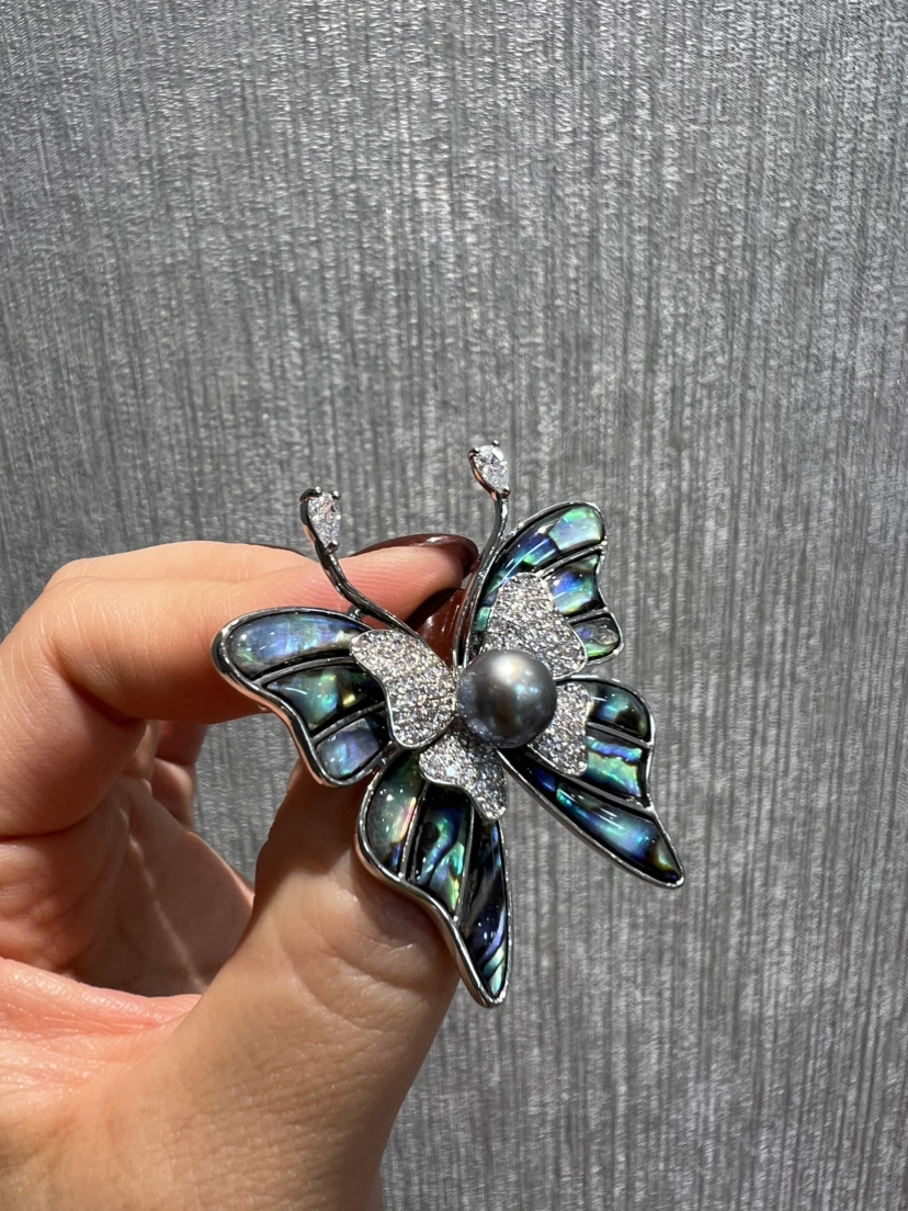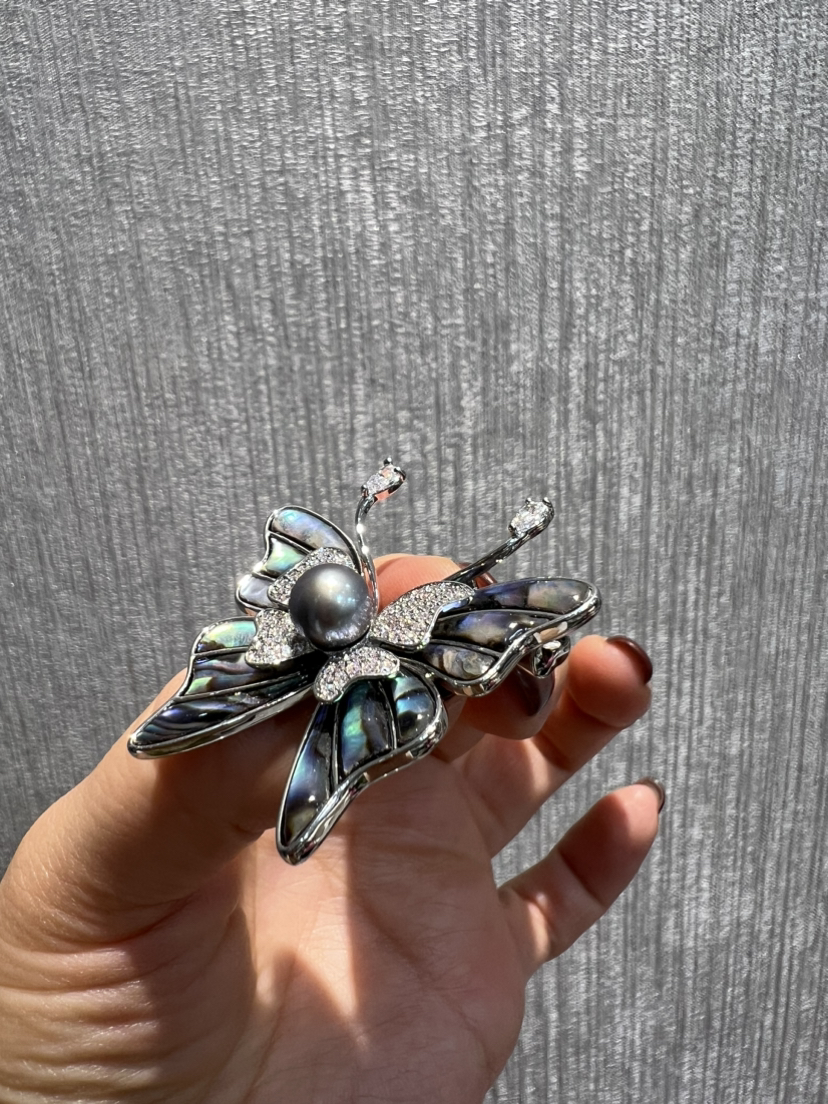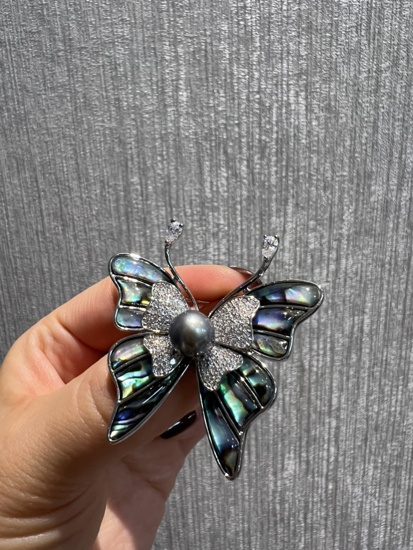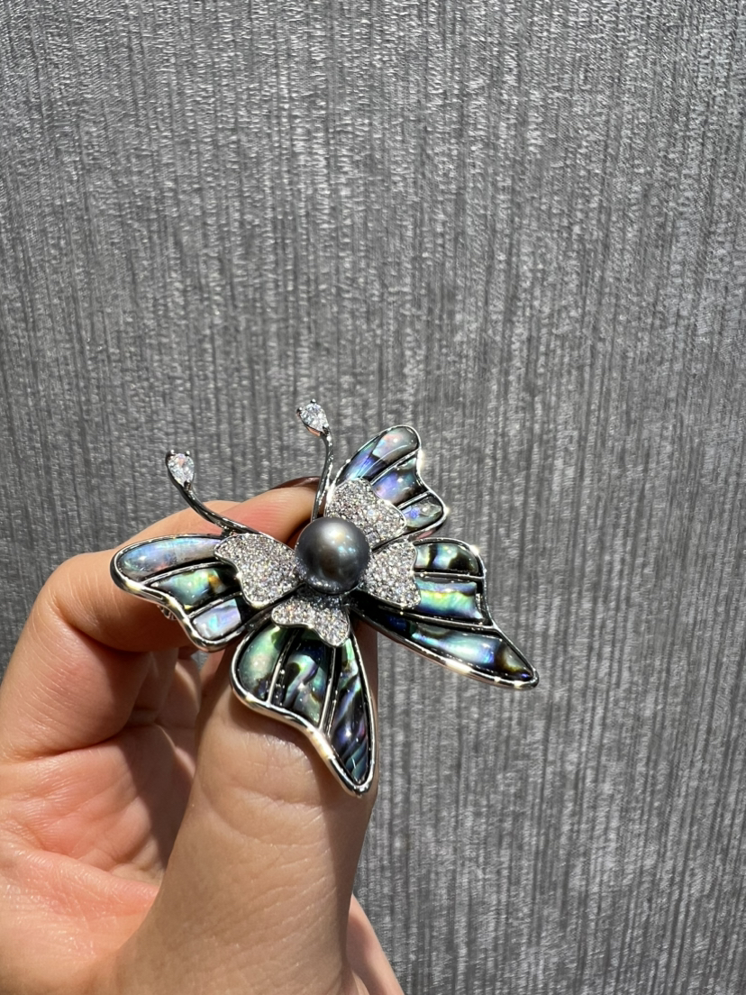 彩贝蝴蝶🦋大溪地珍珠胸针。