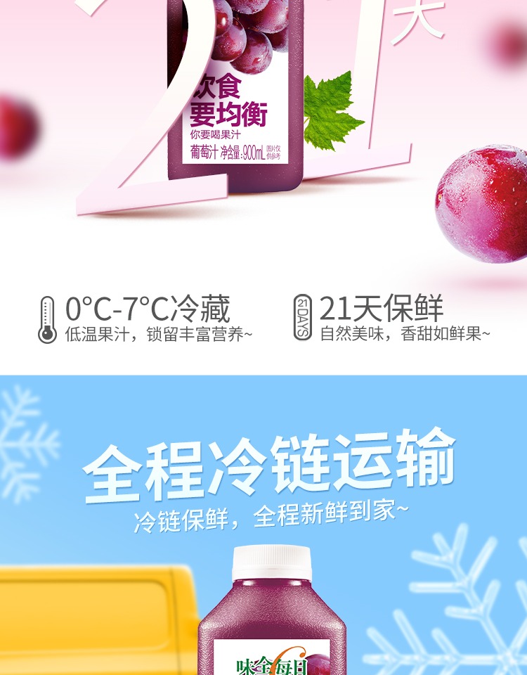 味全 每日C 葡萄汁 冷藏果汁饮料 900ml(瓶)