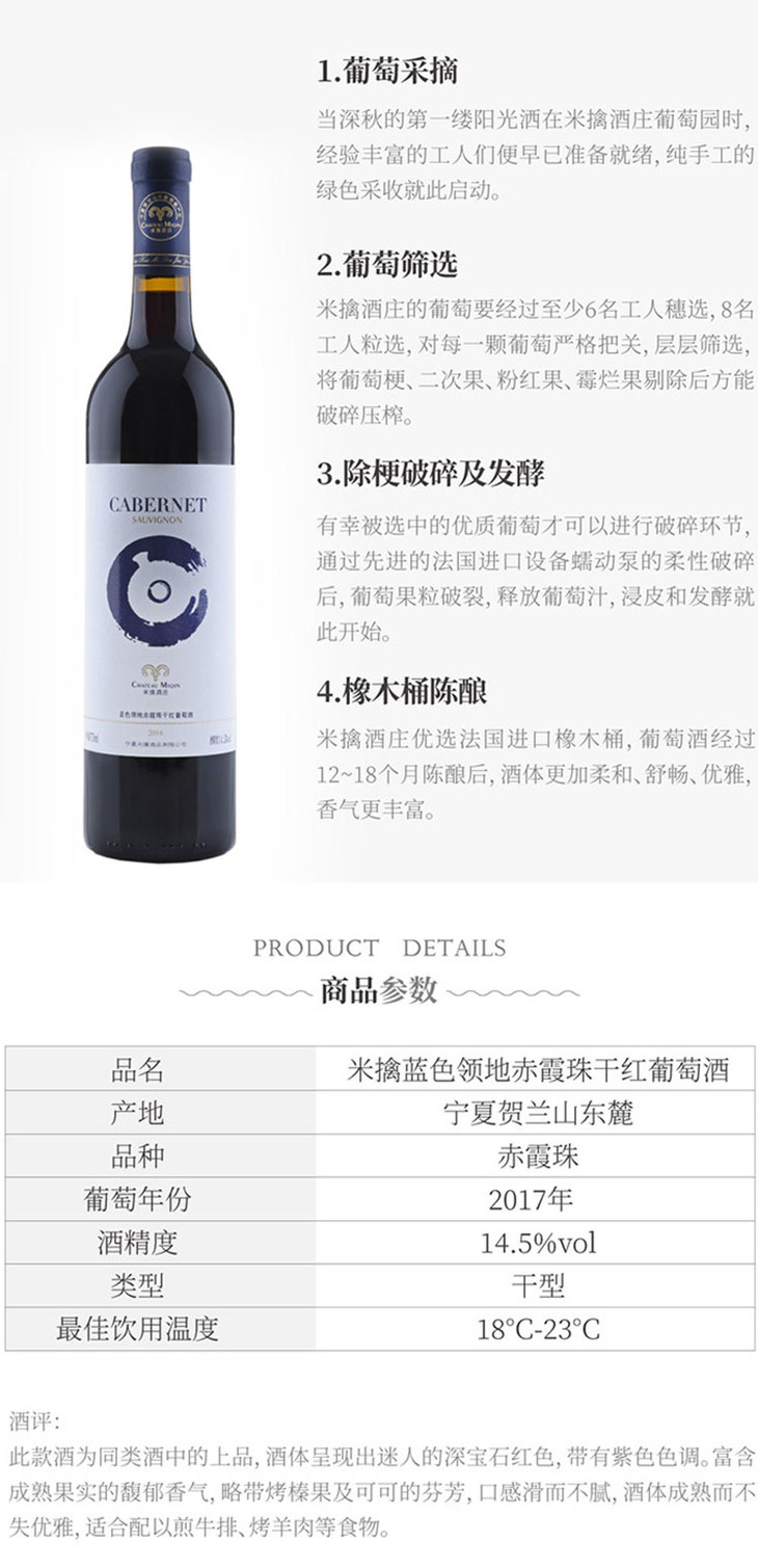 【米擒酒庄】蓝色领地赤霞珠干红葡萄酒 750ml