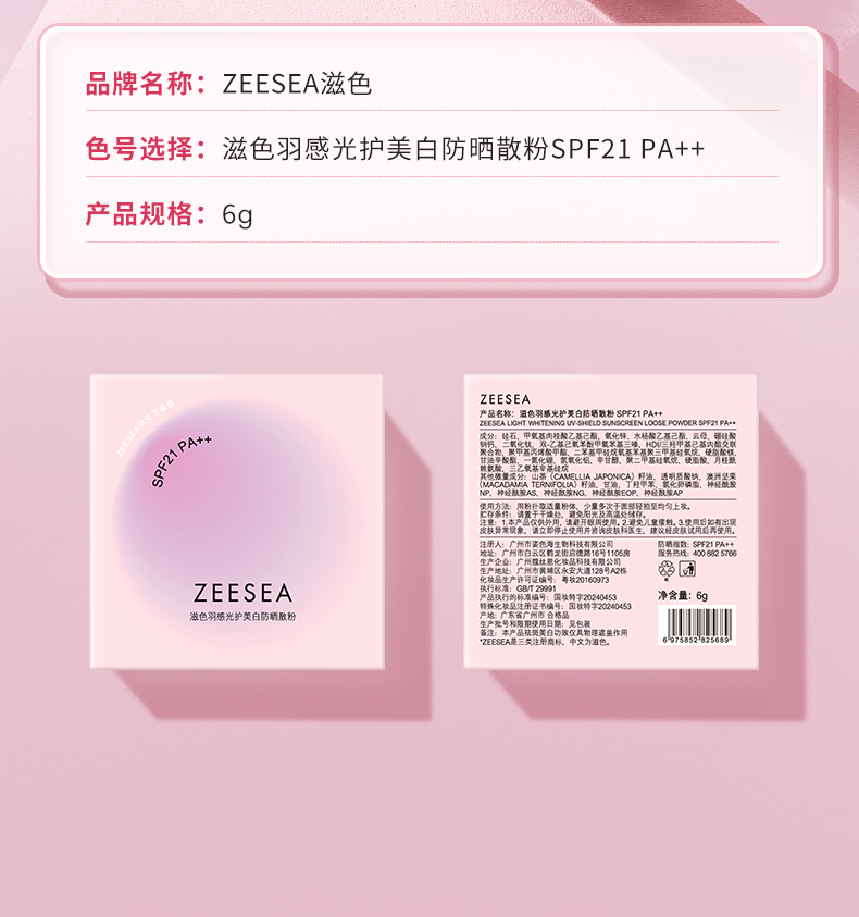 【定金10元抵扣50元 | 尾款49.9元到手2盒】ZEESEA滋色羽感光护美白防晒散粉(前3000单付定送太阳帽,预售联系小滋满2笔加送太阳眼镜,满3笔加送散粉(太阳眼镜、散粉不同享))