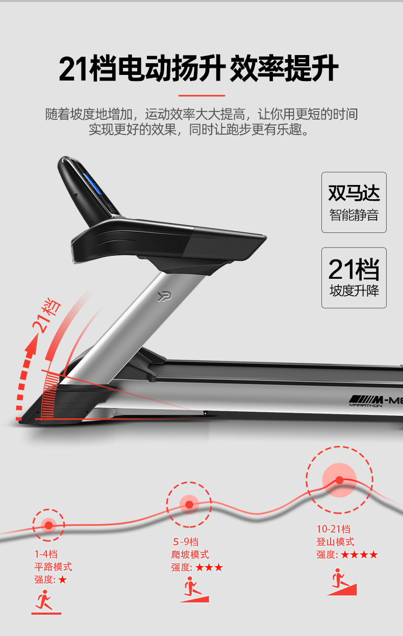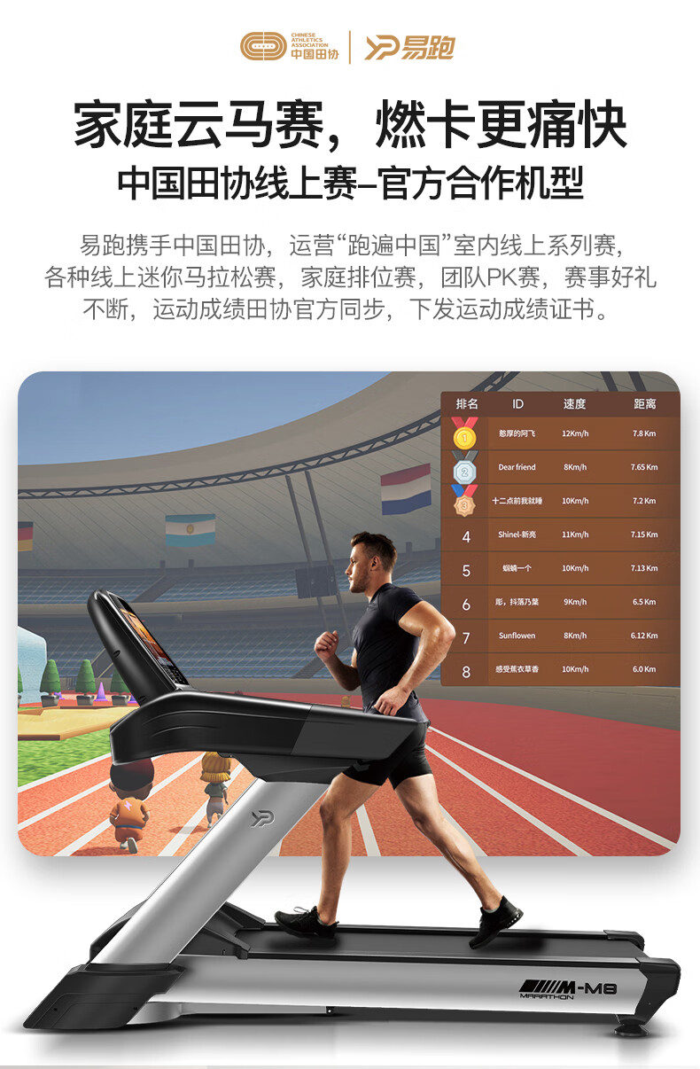 易跑M8马拉松跑步机家用商用智能减震电动高端可折叠健身房健身器 马拉松备战款21.5吋彩屏5.0HP交流马达