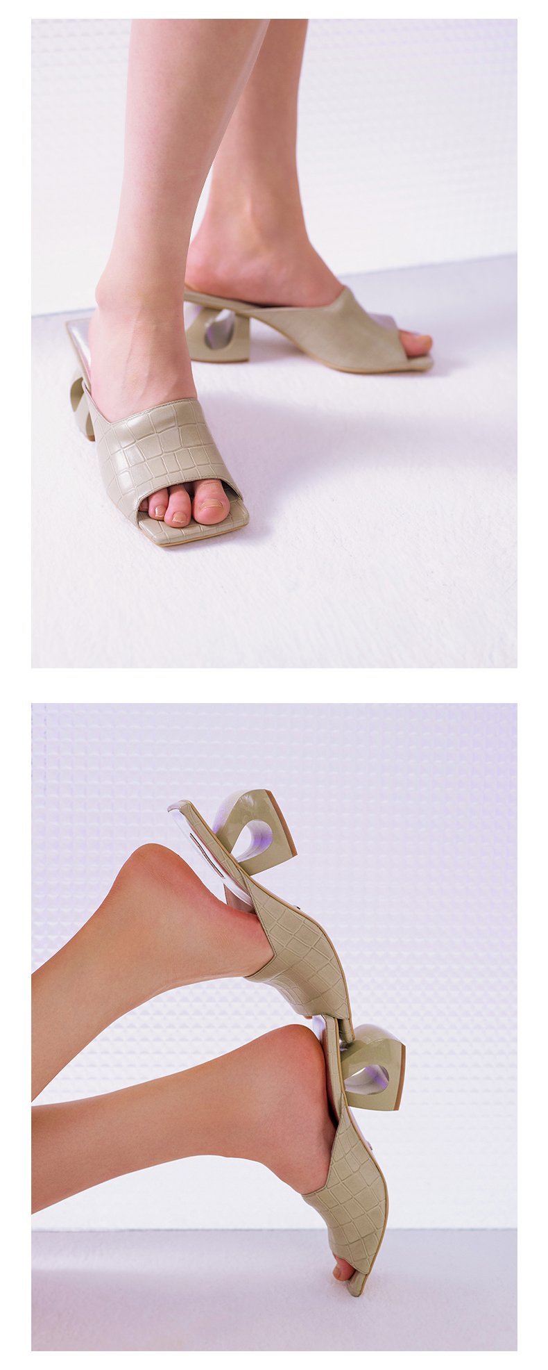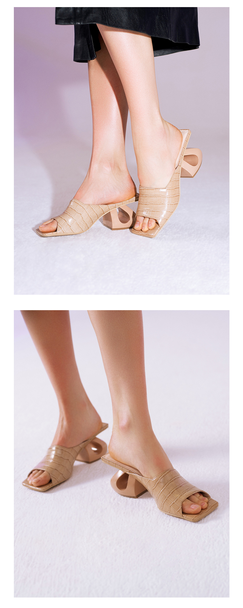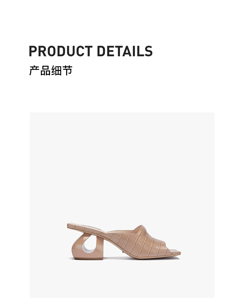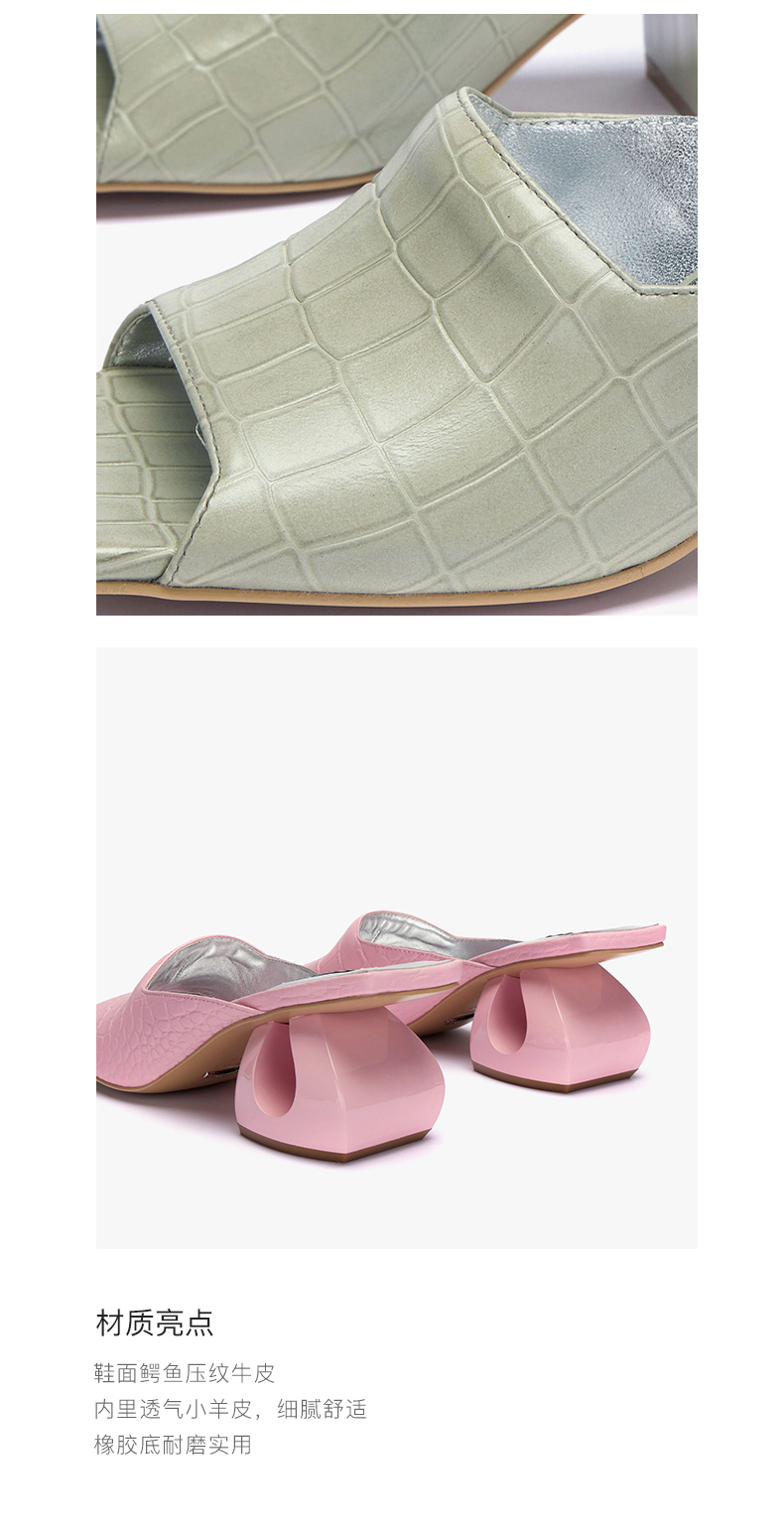 lost in echo 方头压纹牛皮镂空跟凉鞋