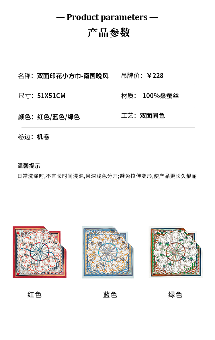 万事利“南国晚风”51厘米双面印花真丝小方巾
