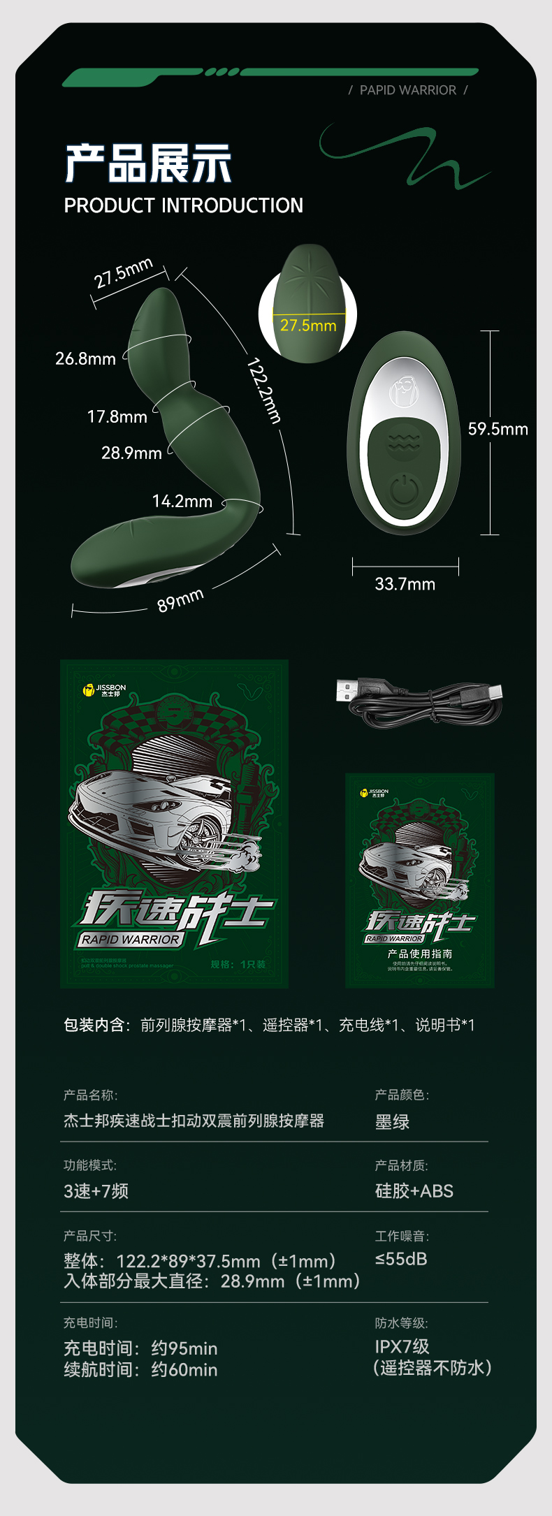 杰士邦疾速战士扣动双震前列腺按摩(JQLXB)