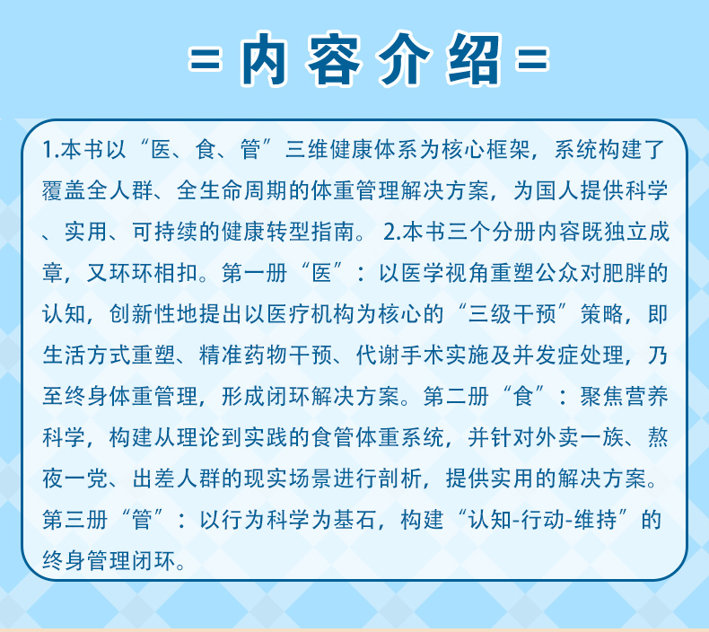 书名:(全3册)体重管好 健康更好——国人体重管理百科(医、食、管)
