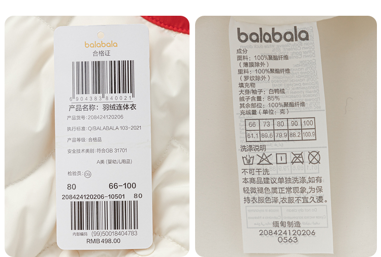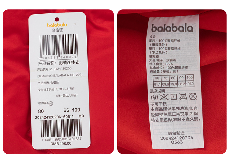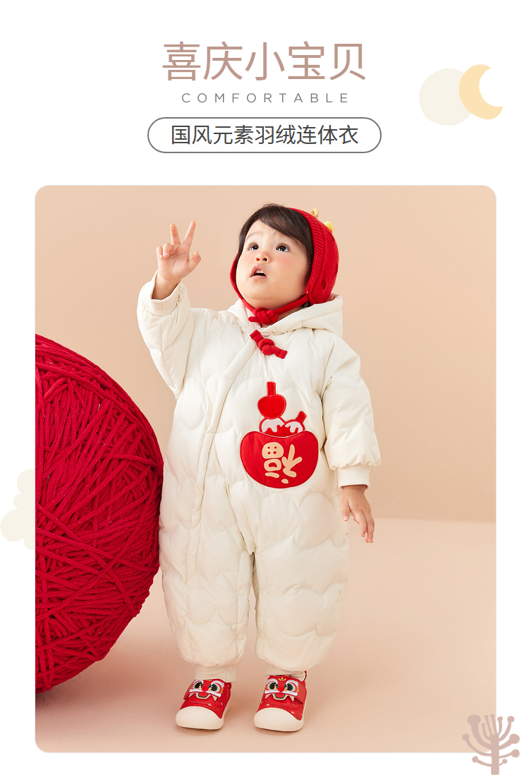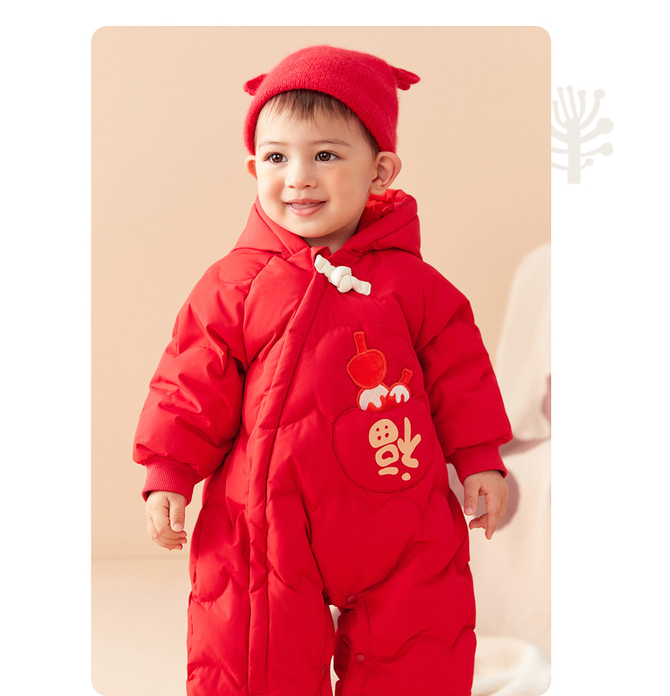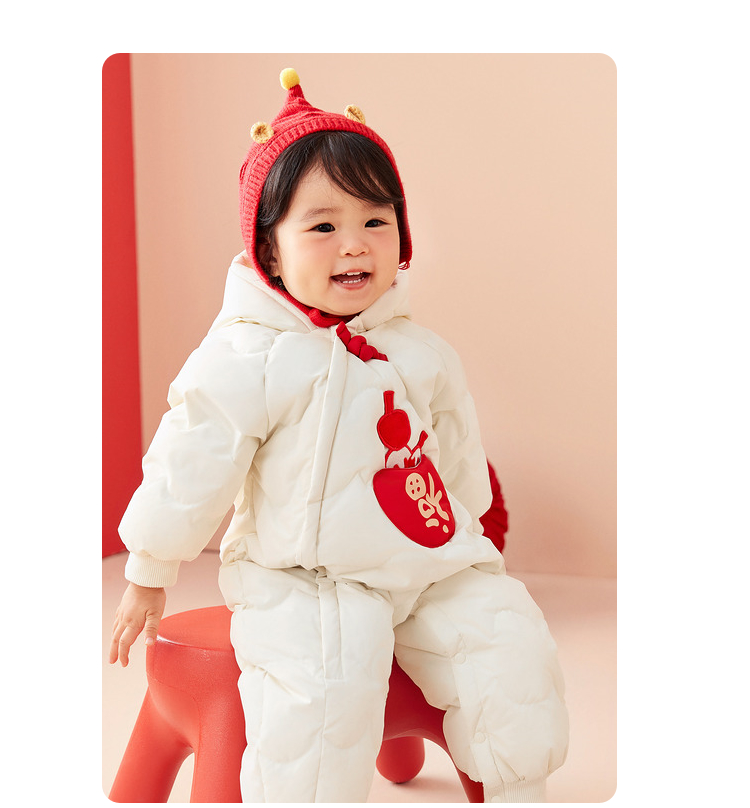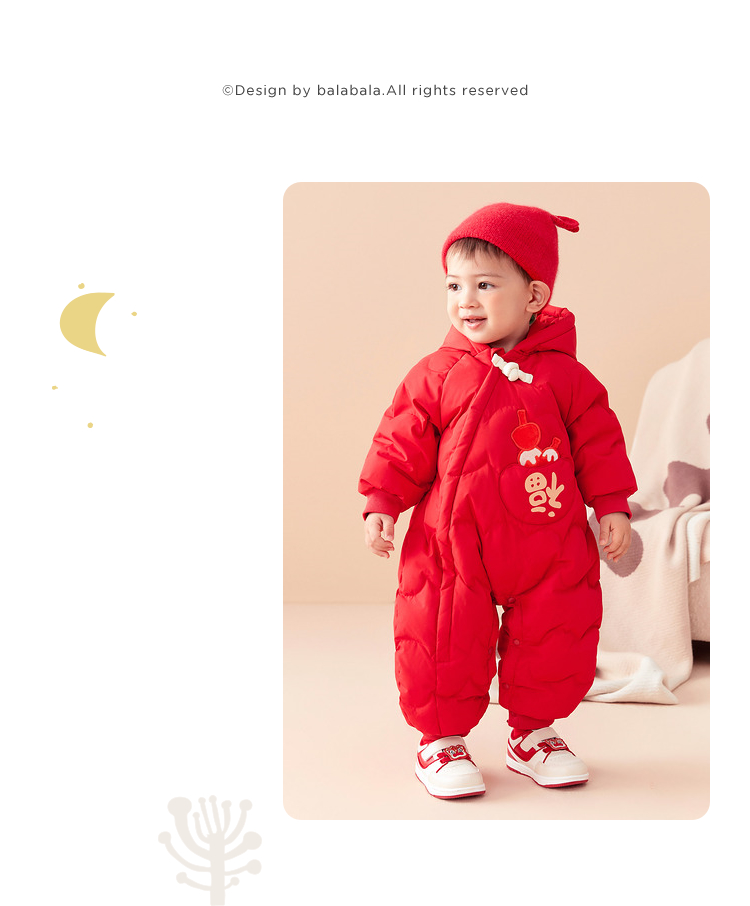 巴拉巴拉婴儿连体衣轻薄羽绒服男女童新款冬装抱衣爬服喜庆萌