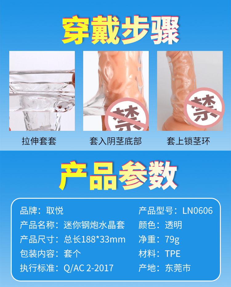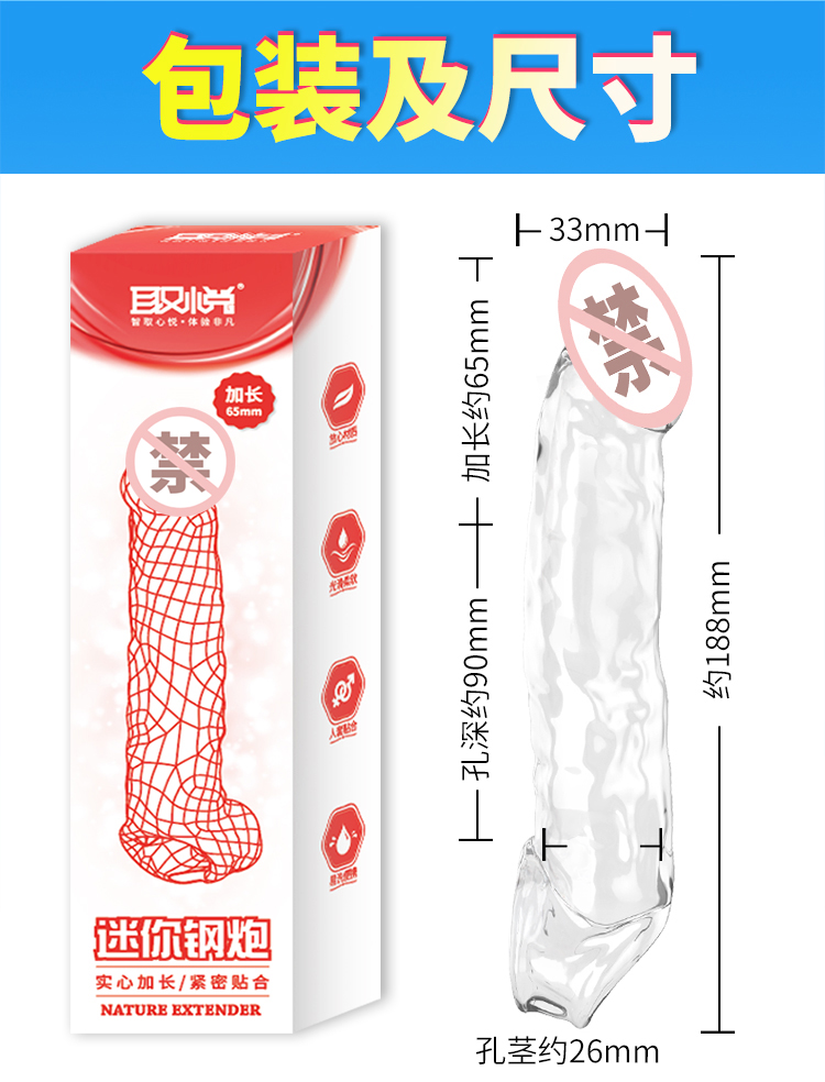 取悦迷你钢炮水晶套 戴具狼牙套重复使用女性器具龟头套套男士增大套加厚避孕套琅琊套避孕套男狼牙棒物理加粗专用持久增强