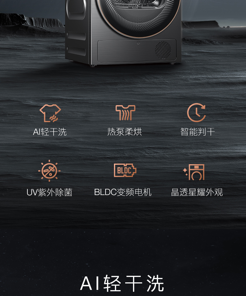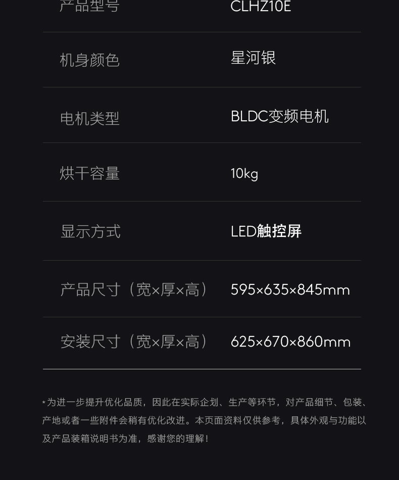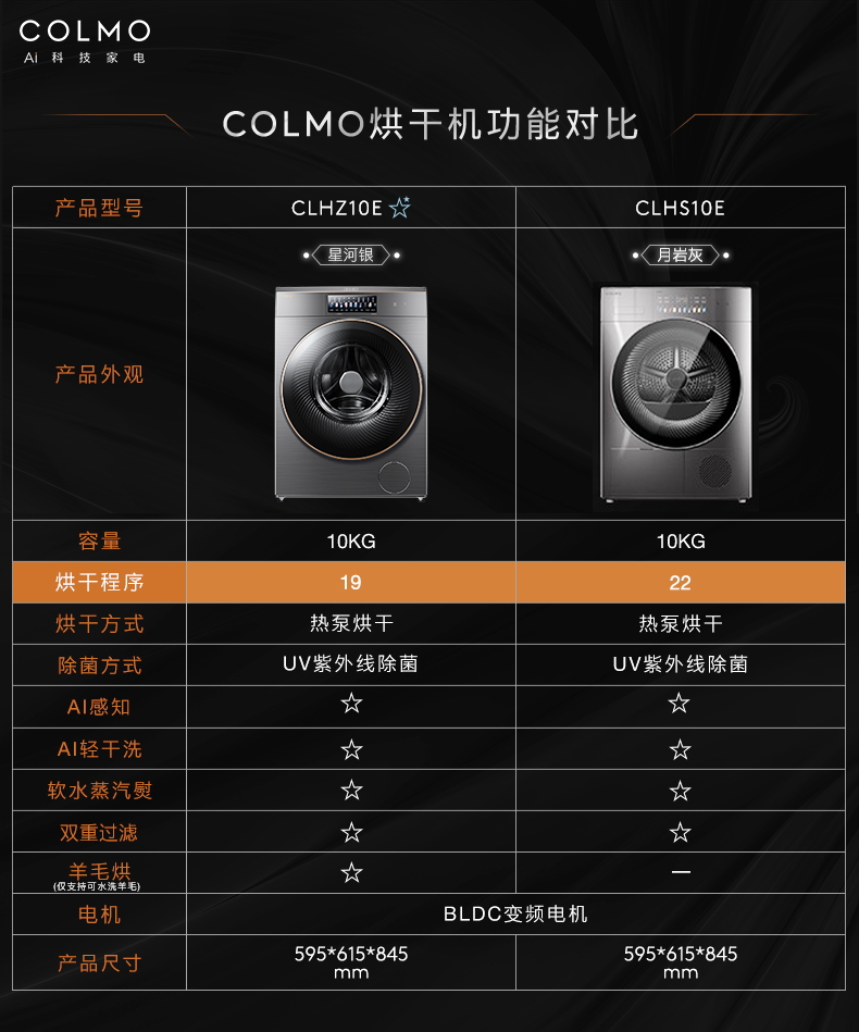 COLMO 星图系列家用热泵烘干机10kg 轻干洗AI感知健康紫外线除菌干衣机 CLHZ10E 热泵烘干机