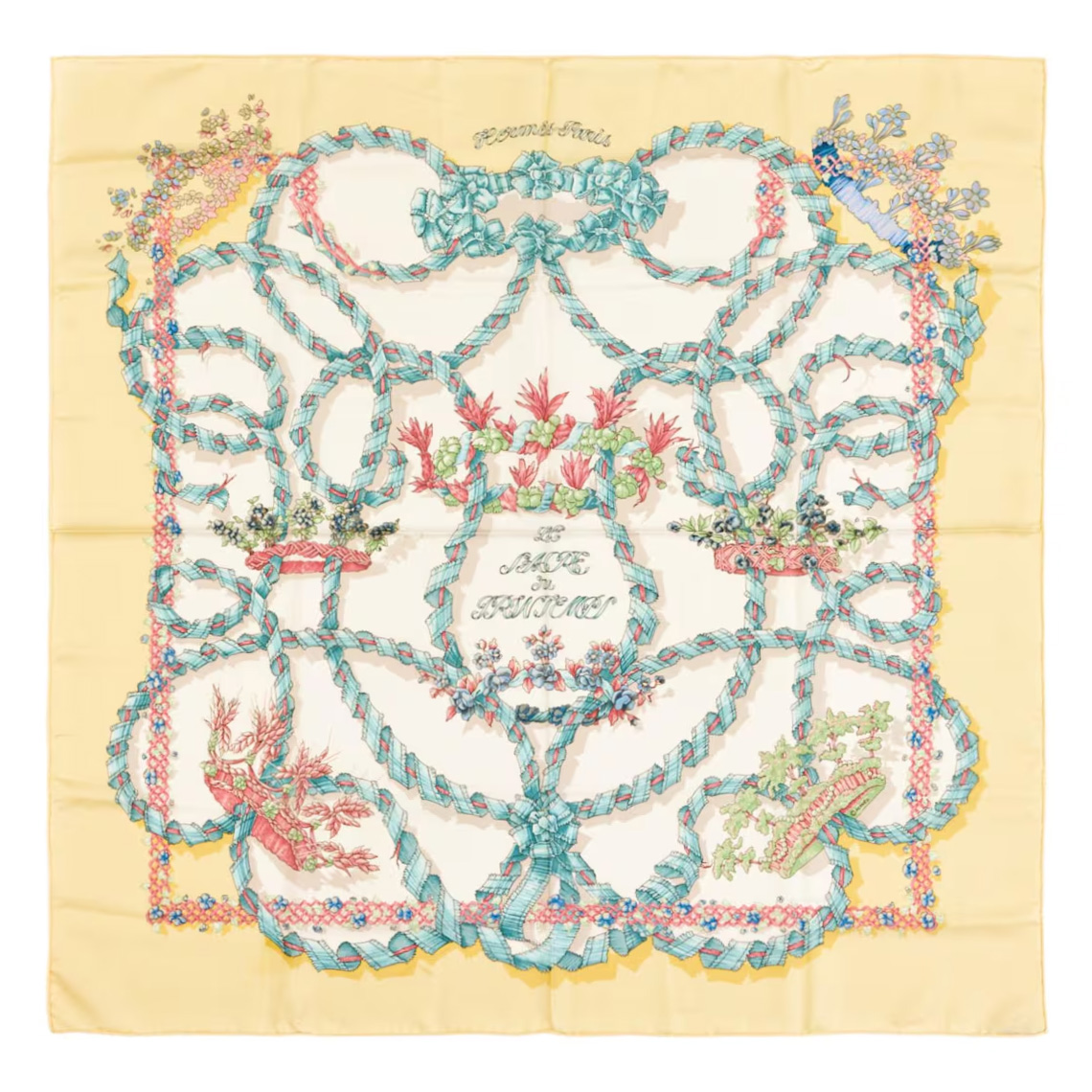 【已售】独角鹿西洋古董1986年法国爱马仕出品Henri d’Origny设计《春之祭》主题丝绸方巾