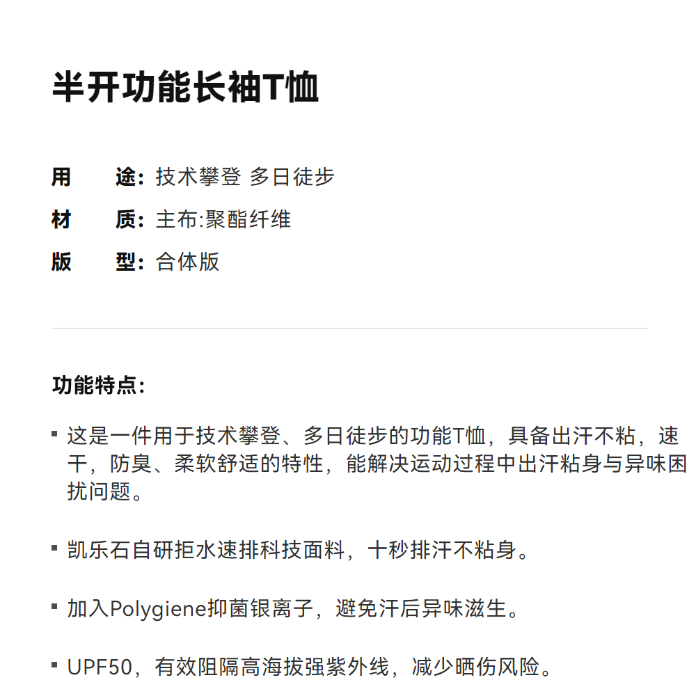KAILAS凯乐石 男款半开功能T恤 KG2517134