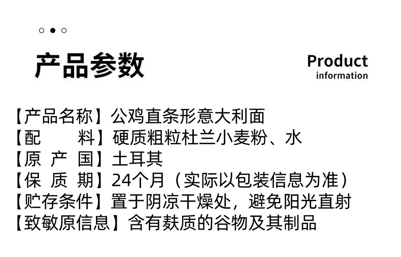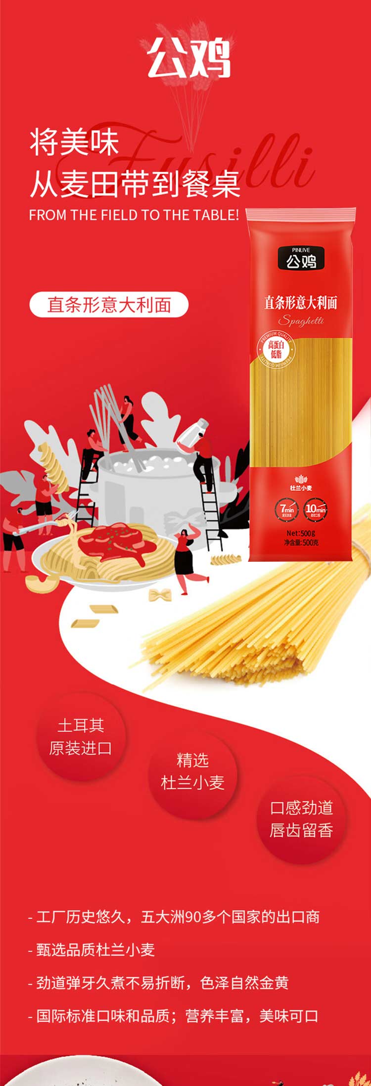 土耳其进口公鸡直条形意大利面500g