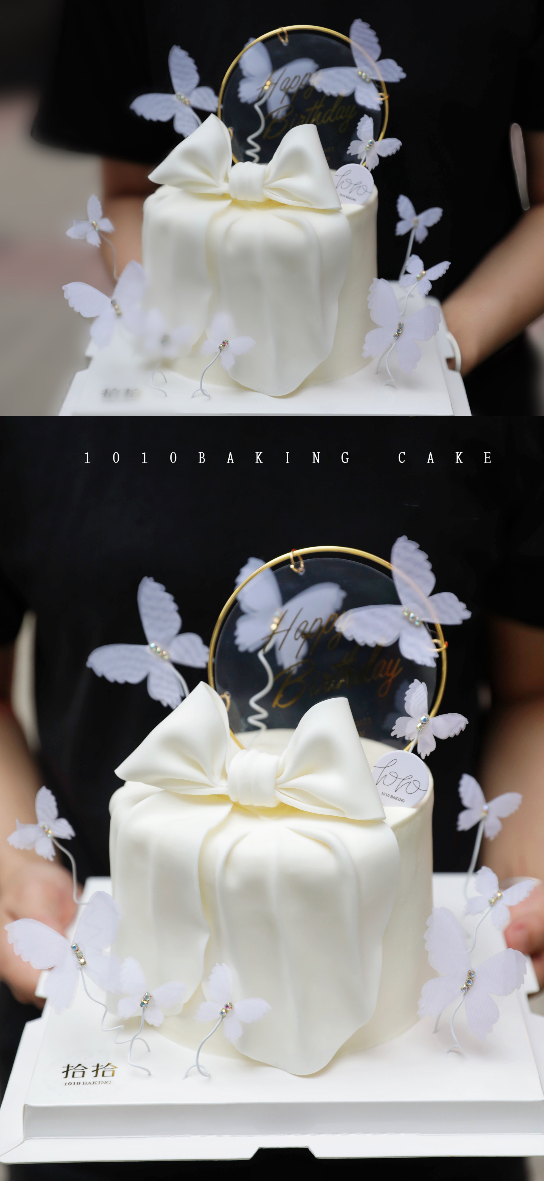 「纯白法式·蝴蝶结」翻糖巧克力·100%动物奶油(附图5寸加高·提前4天预订)