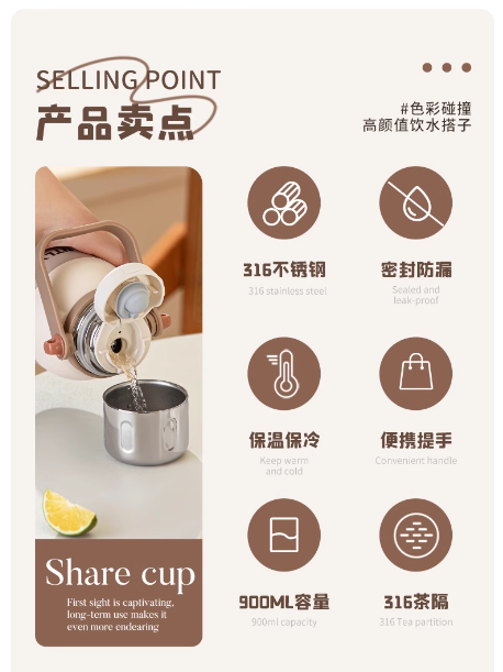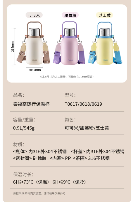 泰福高随行保温壶900mlT0617/T0618/T0619