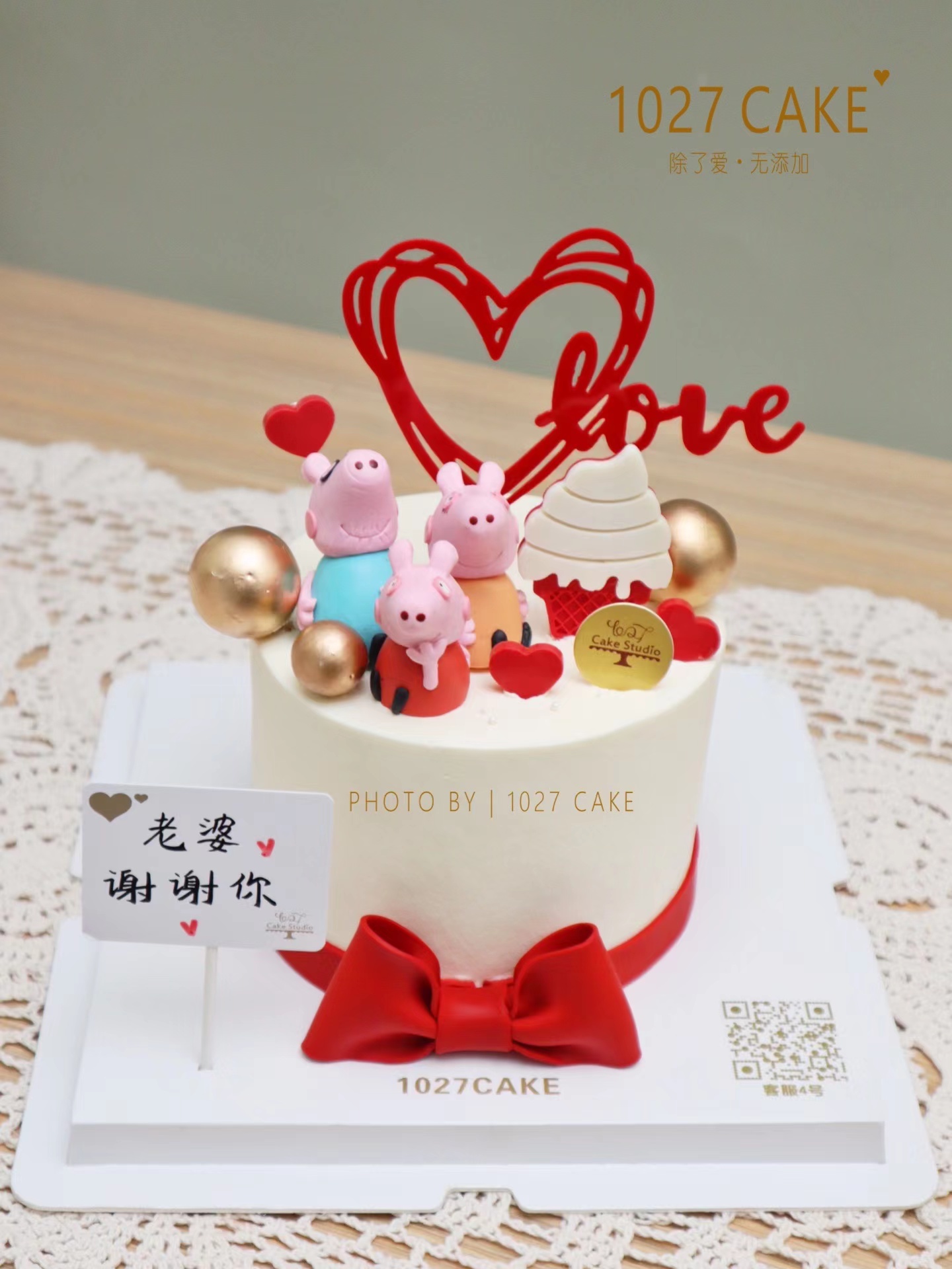 1027CAKE | 520 爱的告白 小猪佩奇 周年纪念 翻糖蝴蝶结 一家三口