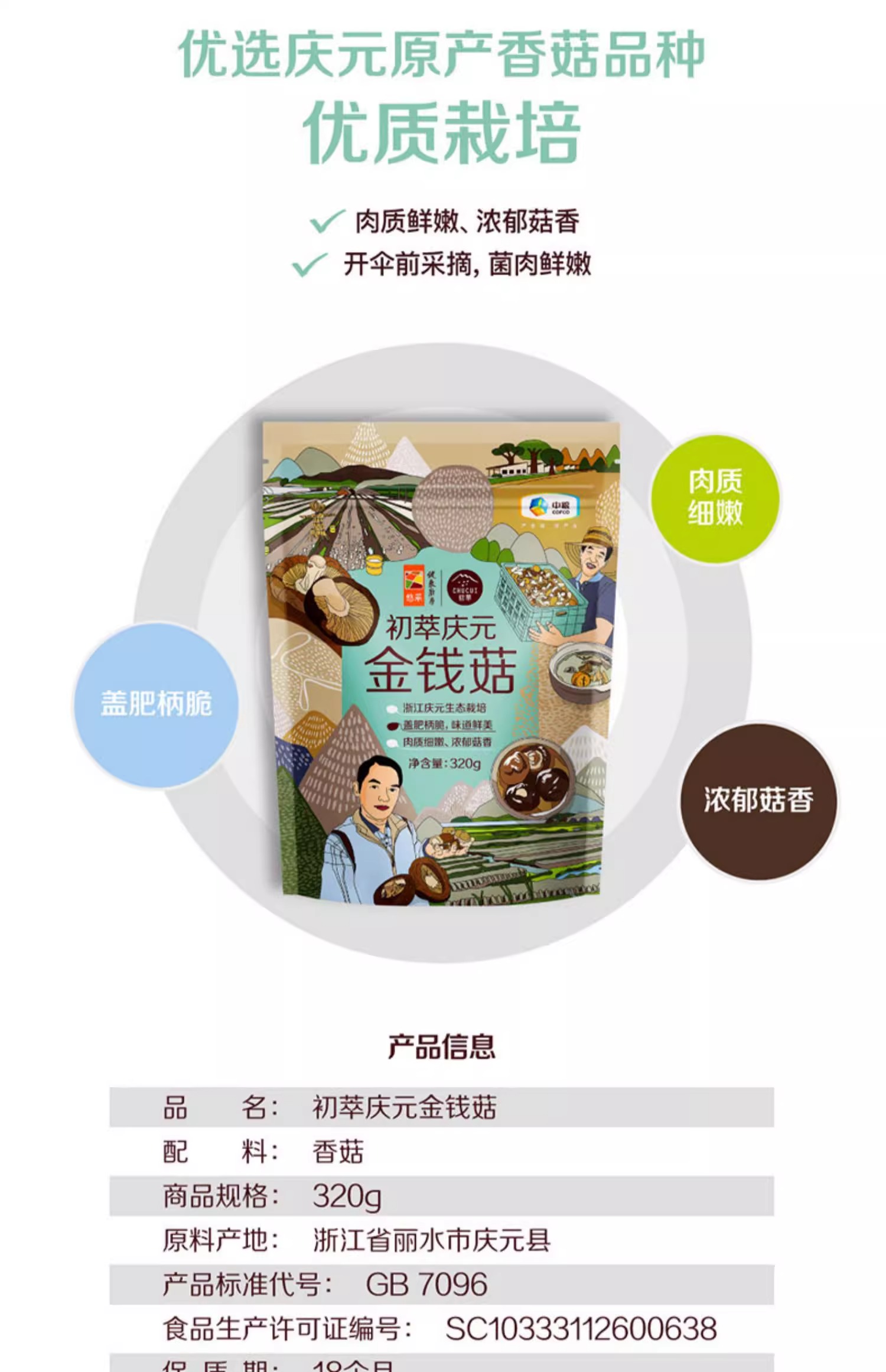 【特惠有效期到2025.8.21到期介意慎拍】中粮初萃庆元金钱菇320g(赠中粮初萃洮南绿豆400g/袋 有效期到2025-07-26到期,介意慎拍)