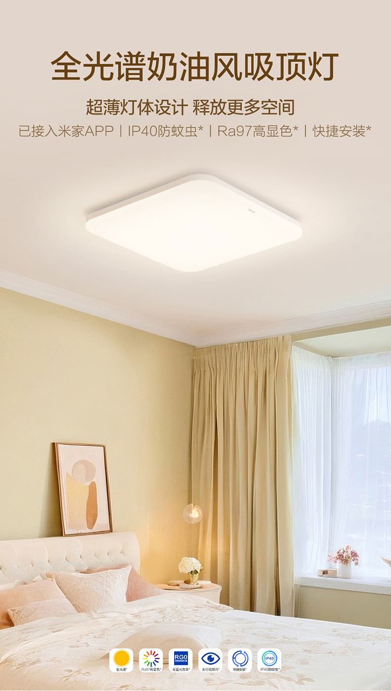欧普(OPPLE)儿童房护眼灯光谱吸顶灯书房灯冰玉卧室灯简约现代灯具