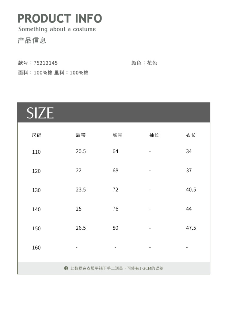 | 货号: 75212145 | 参考身高: 110/52 120/56 130/60 140/64 150/68 |