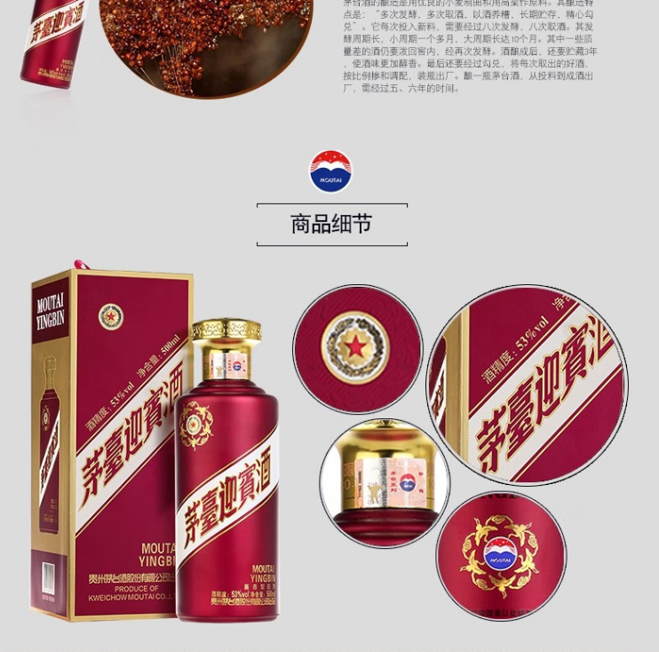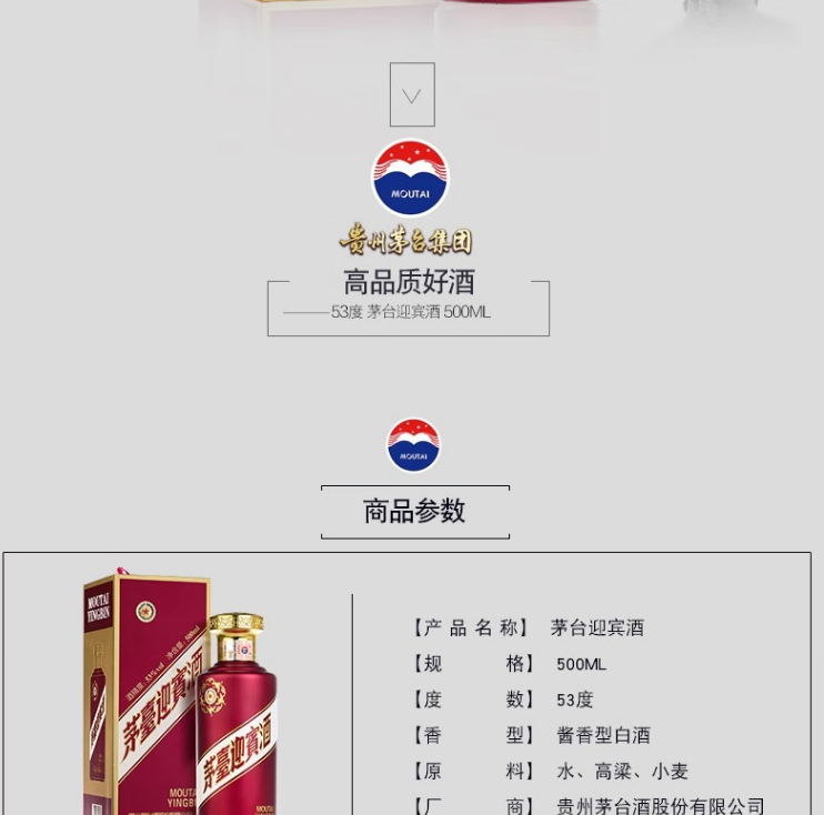 茅台迎宾酒(紫)酱香型白酒53% 500ml