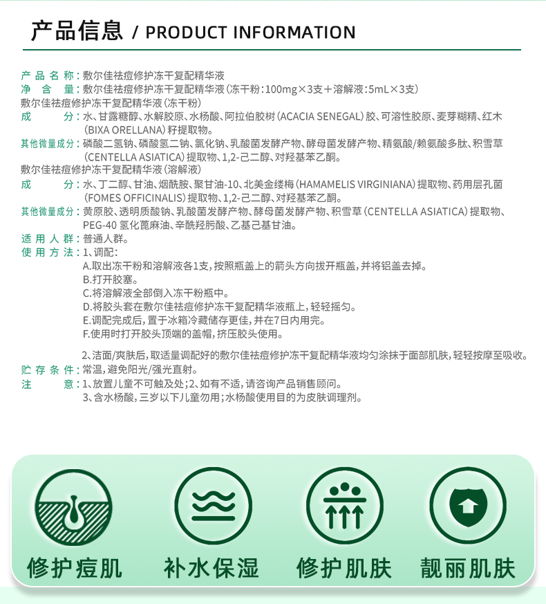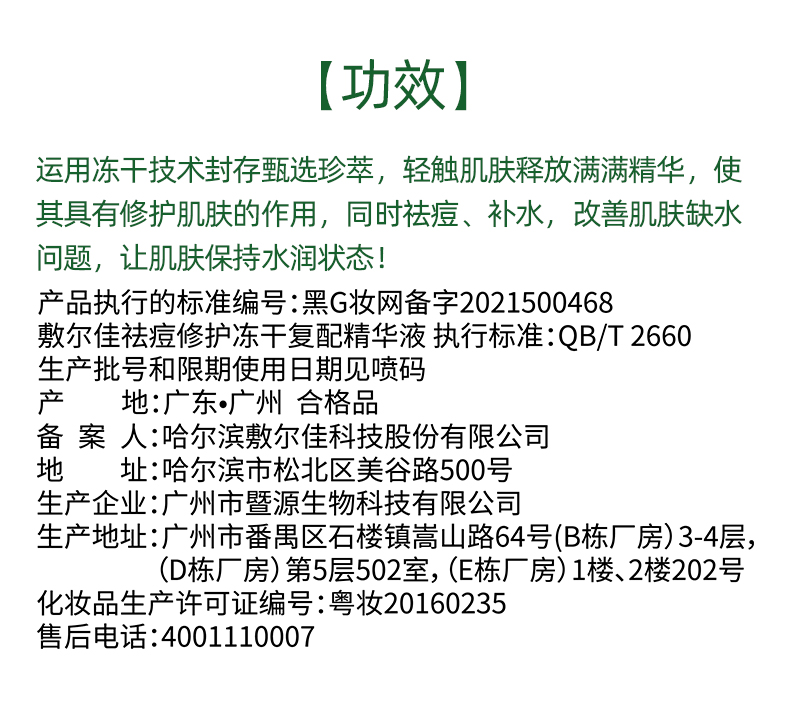 敷尔佳祛痘修护冻干复配精华液1盒