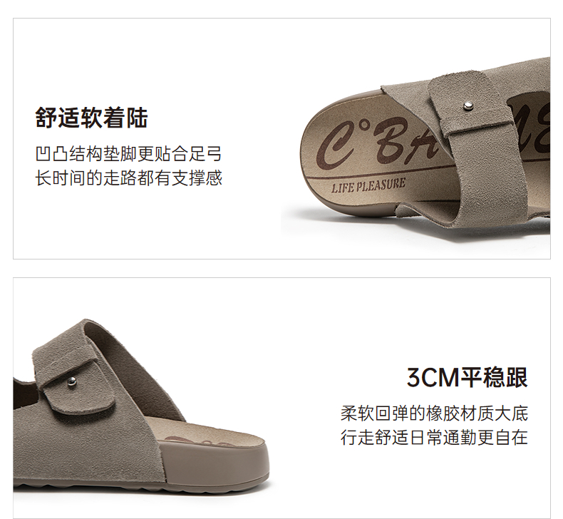 千百度厚底休闲勃肯鞋凉拖鞋女真皮平底外穿增高凉鞋A25357305