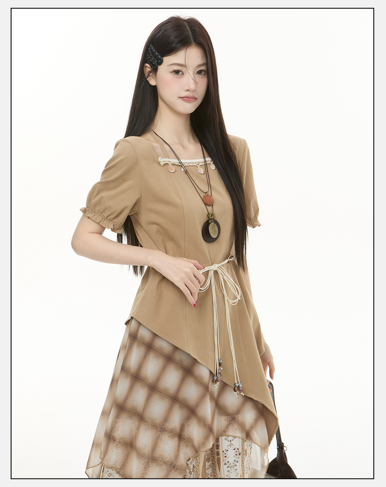 P&X设计师女装2025秋季拼接复古梭织连衣长裙 825308102 卡其