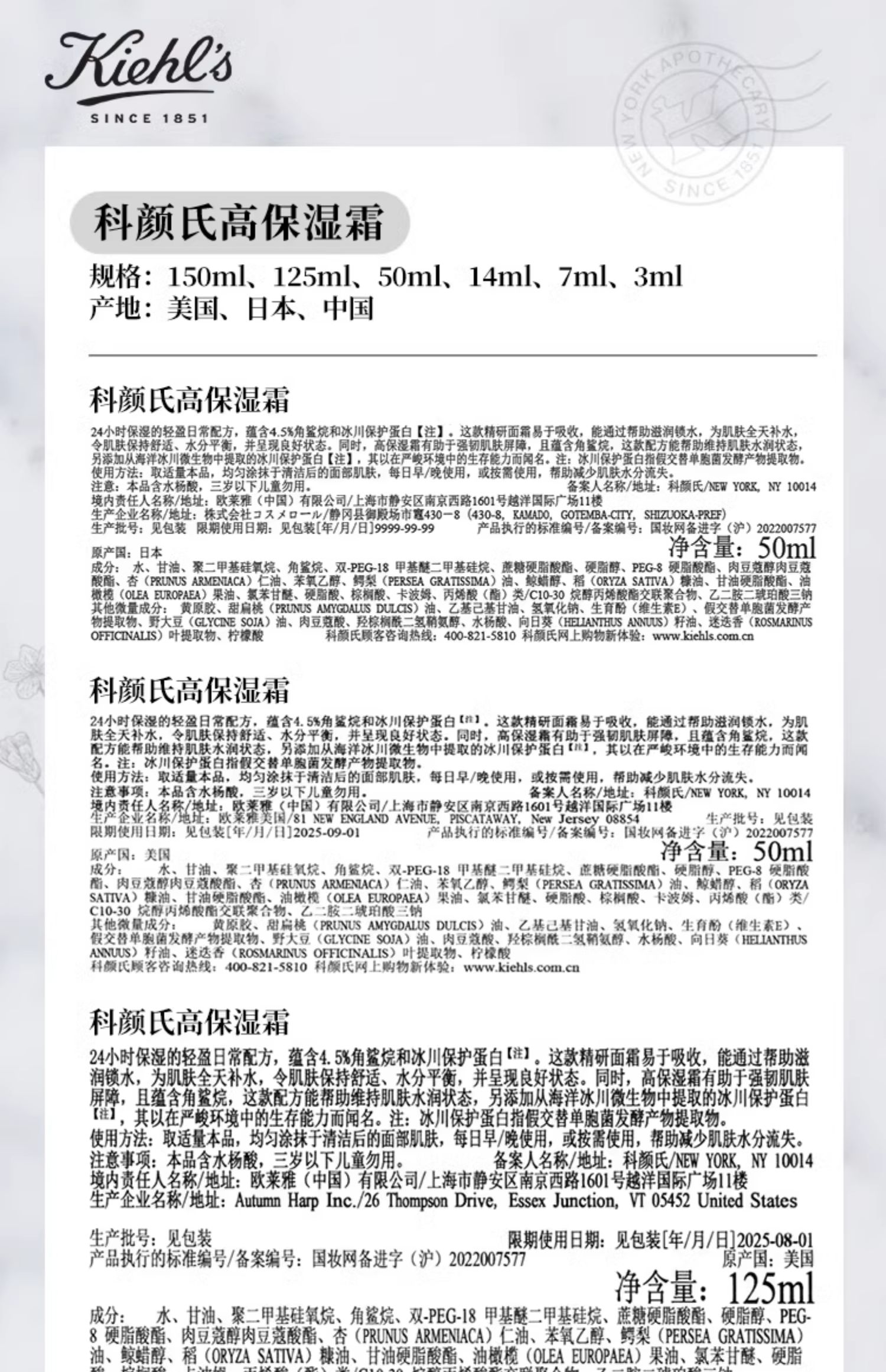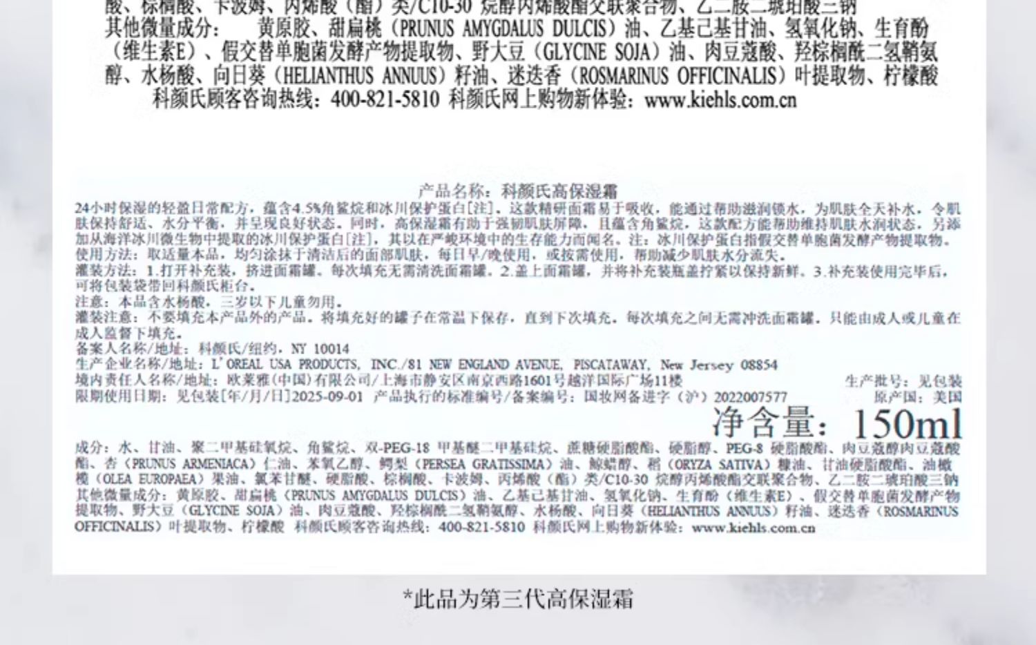科颜氏高保湿面霜(125ml/罐)