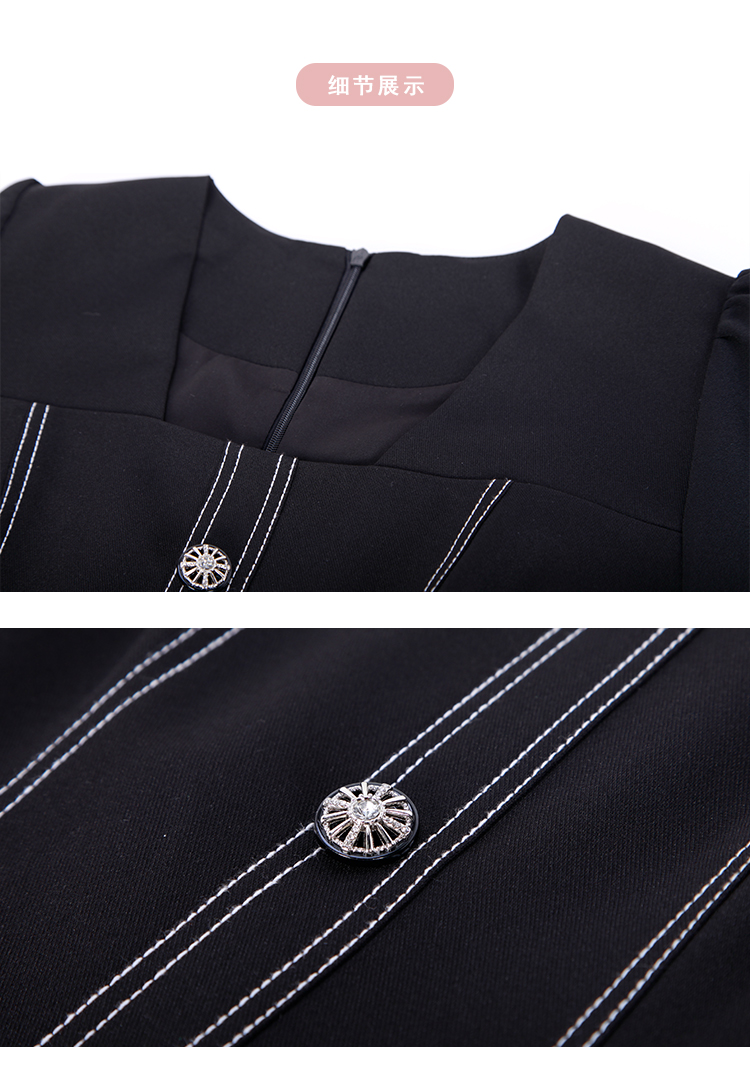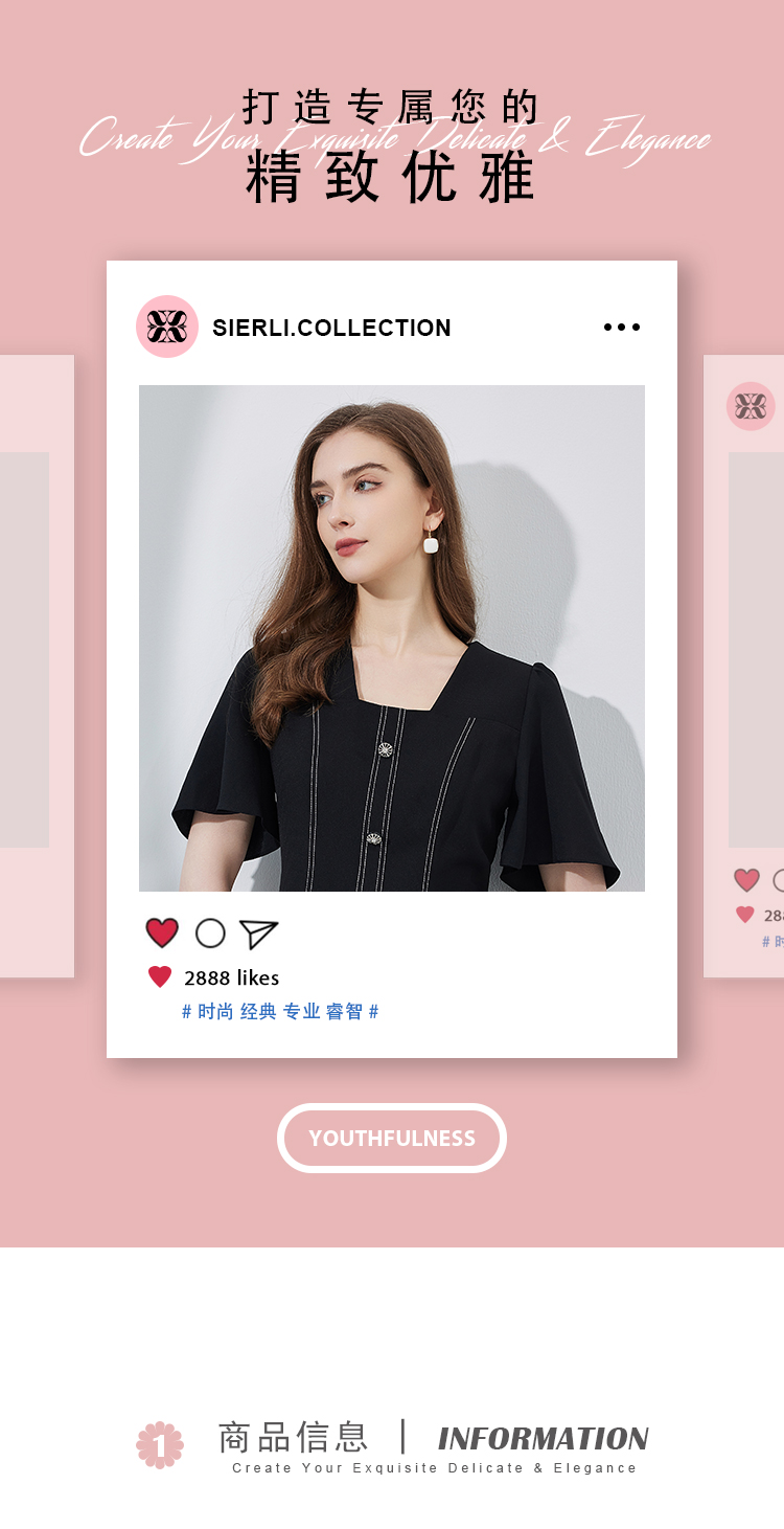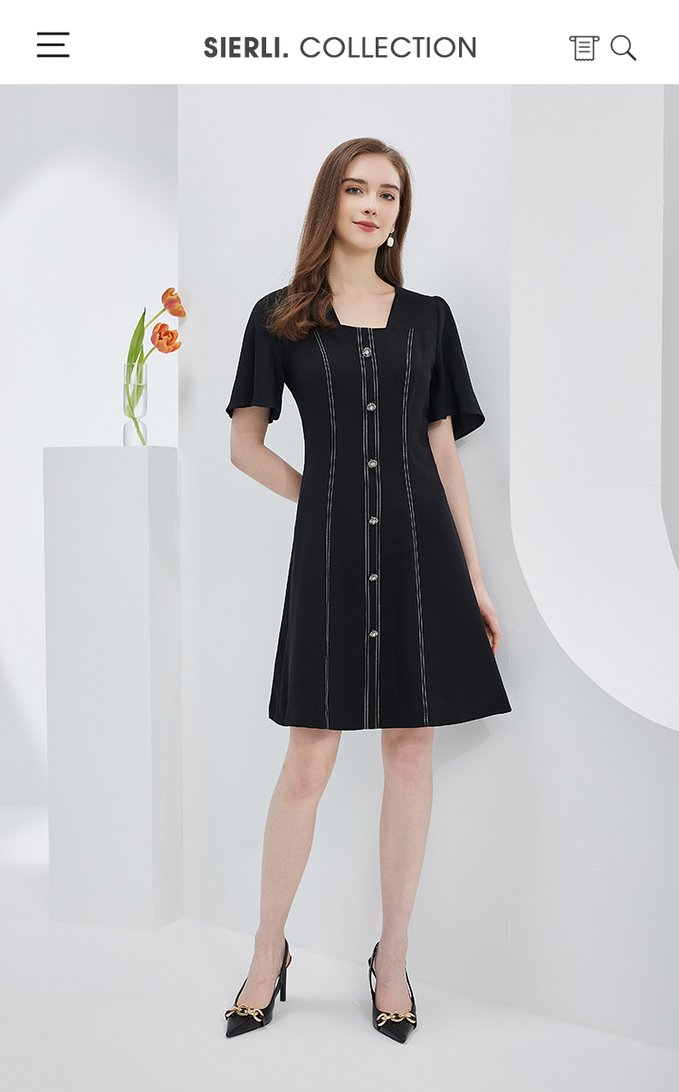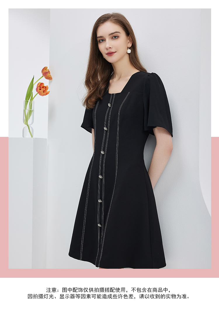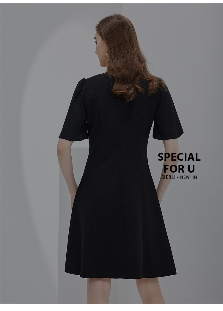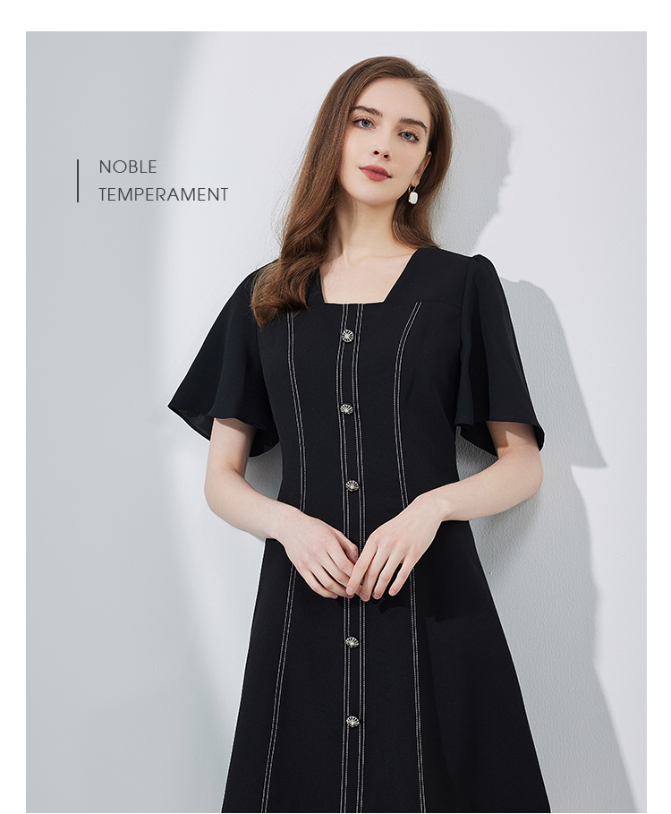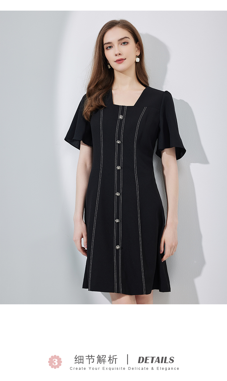 NF8V2斯尔丽瑟俪2023春夏时尚新款手工绣线收腰小A大方荷叶袖型连衣裙