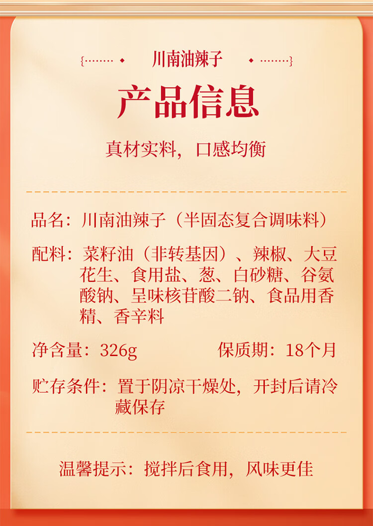 【百】川南油辣子拌菜拌面258g