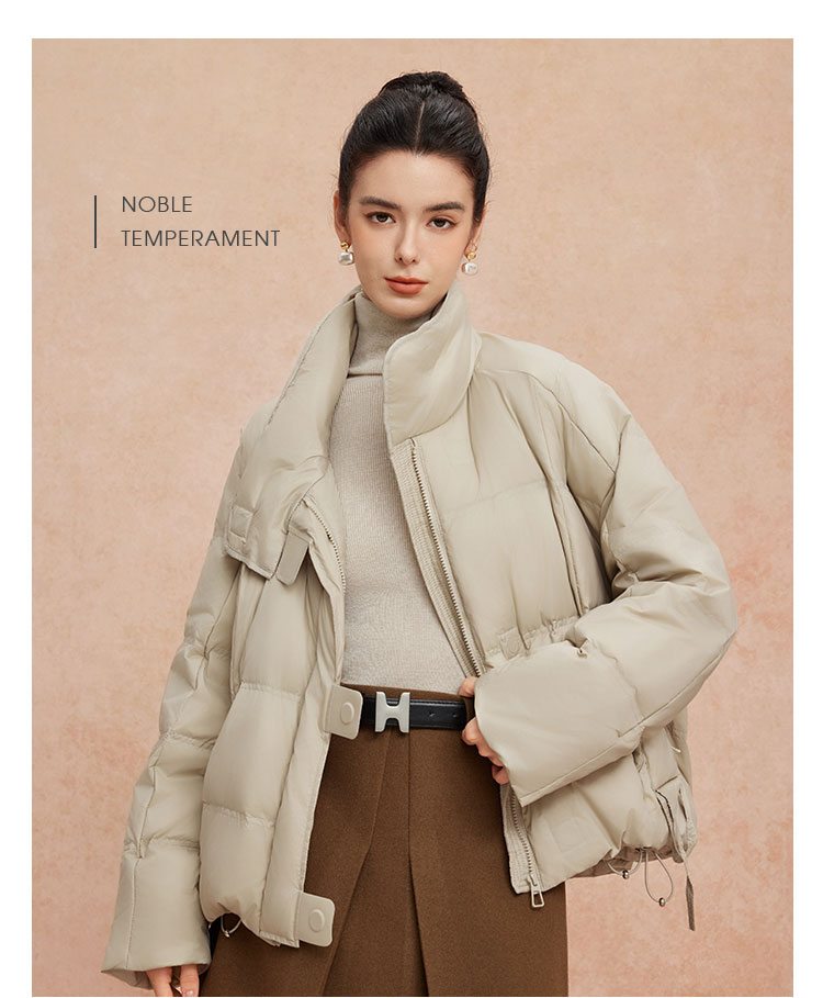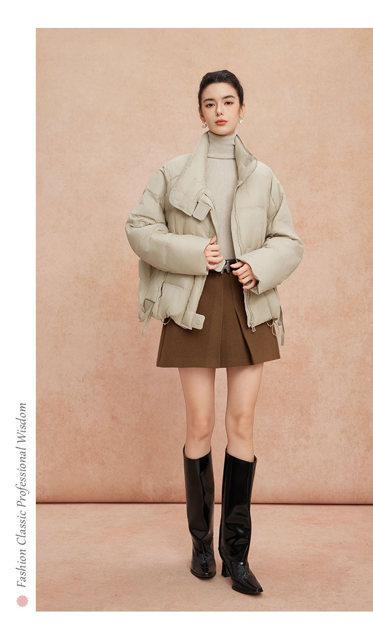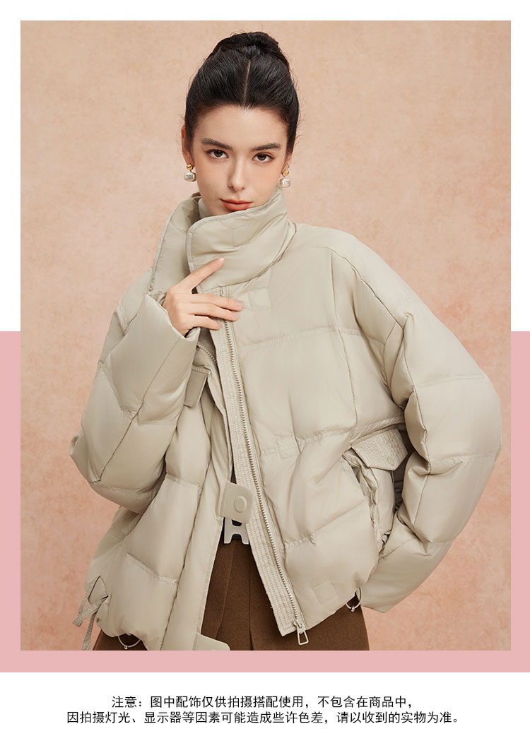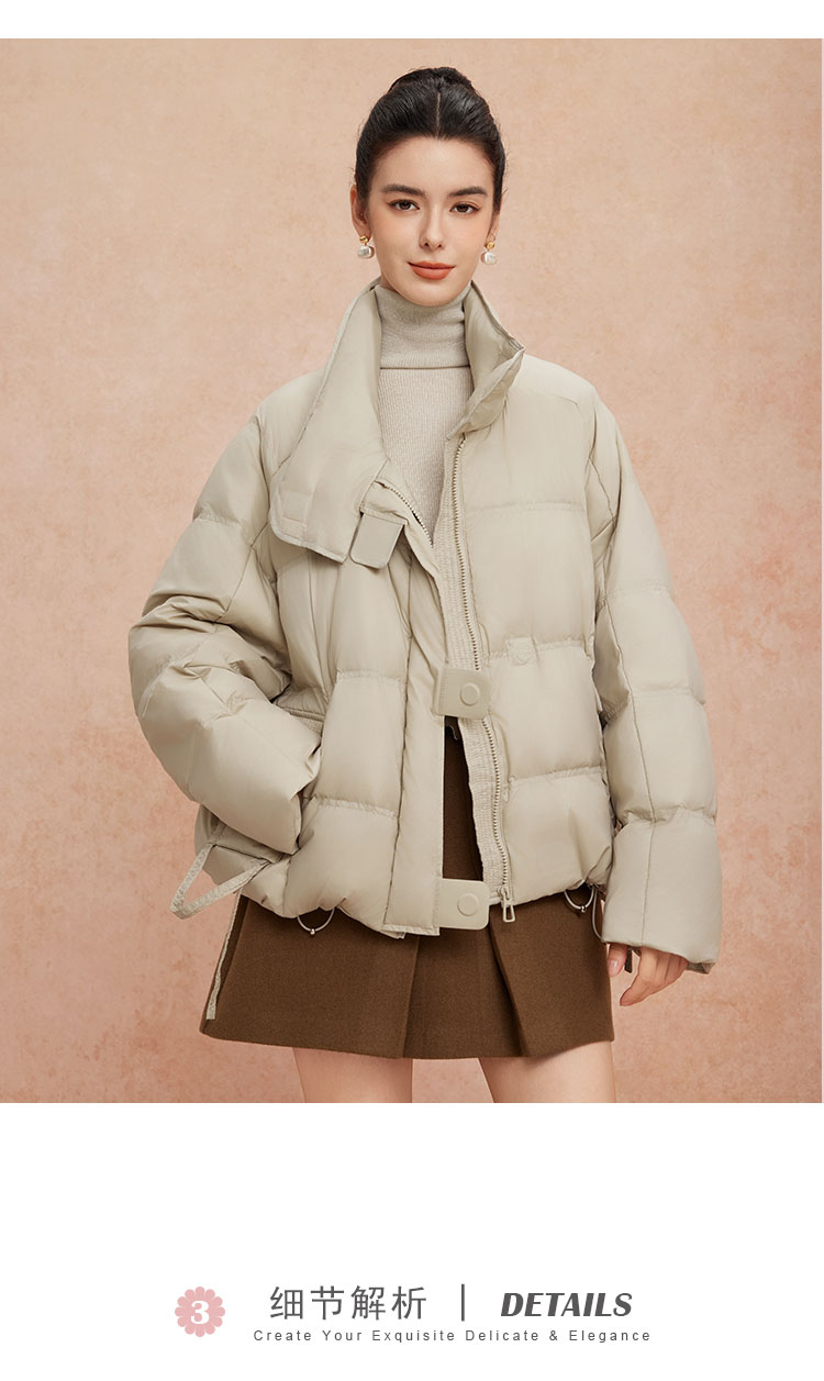 QR003斯尔丽25新款冬立领短款休闲面包服宽松加厚90绒时尚减龄羽绒服