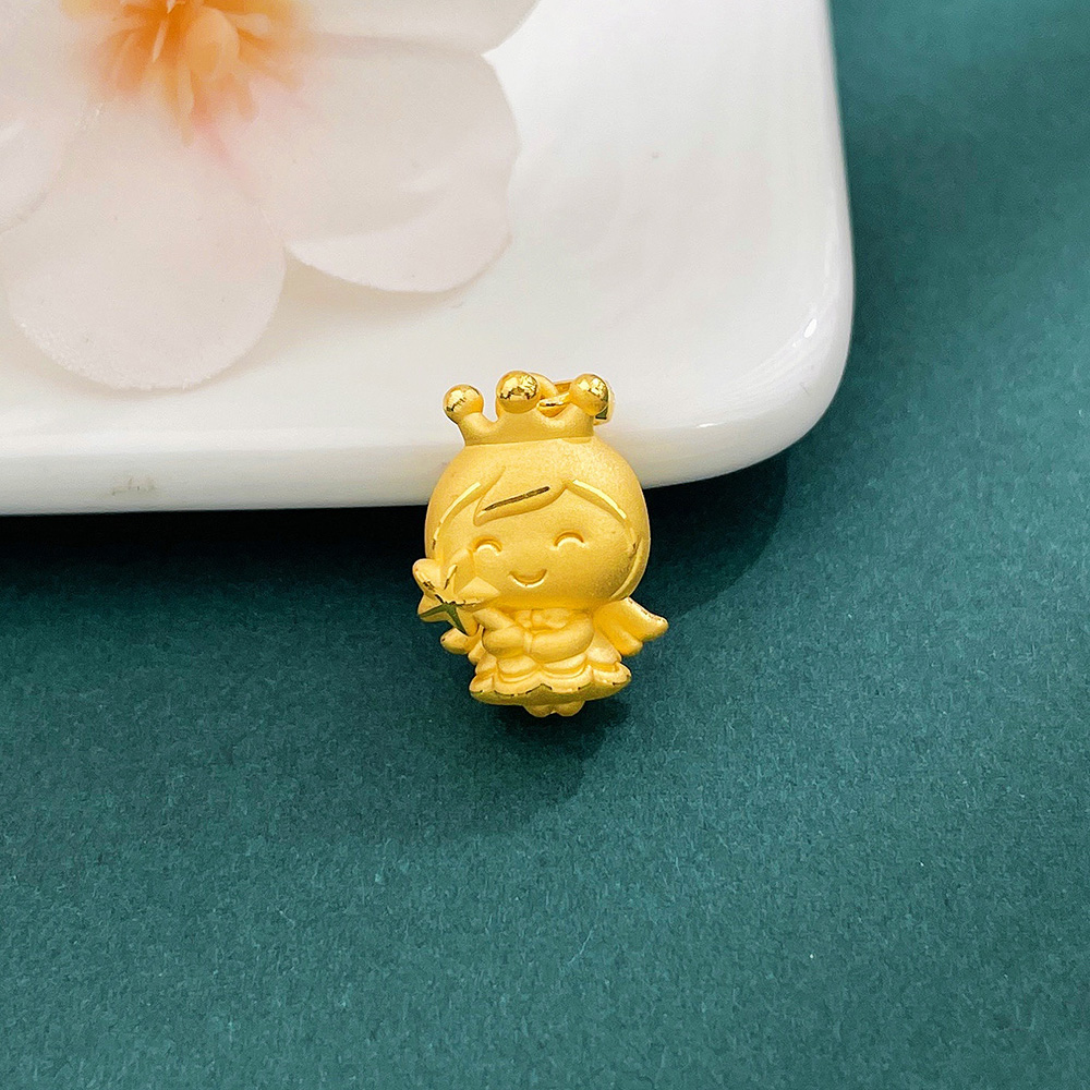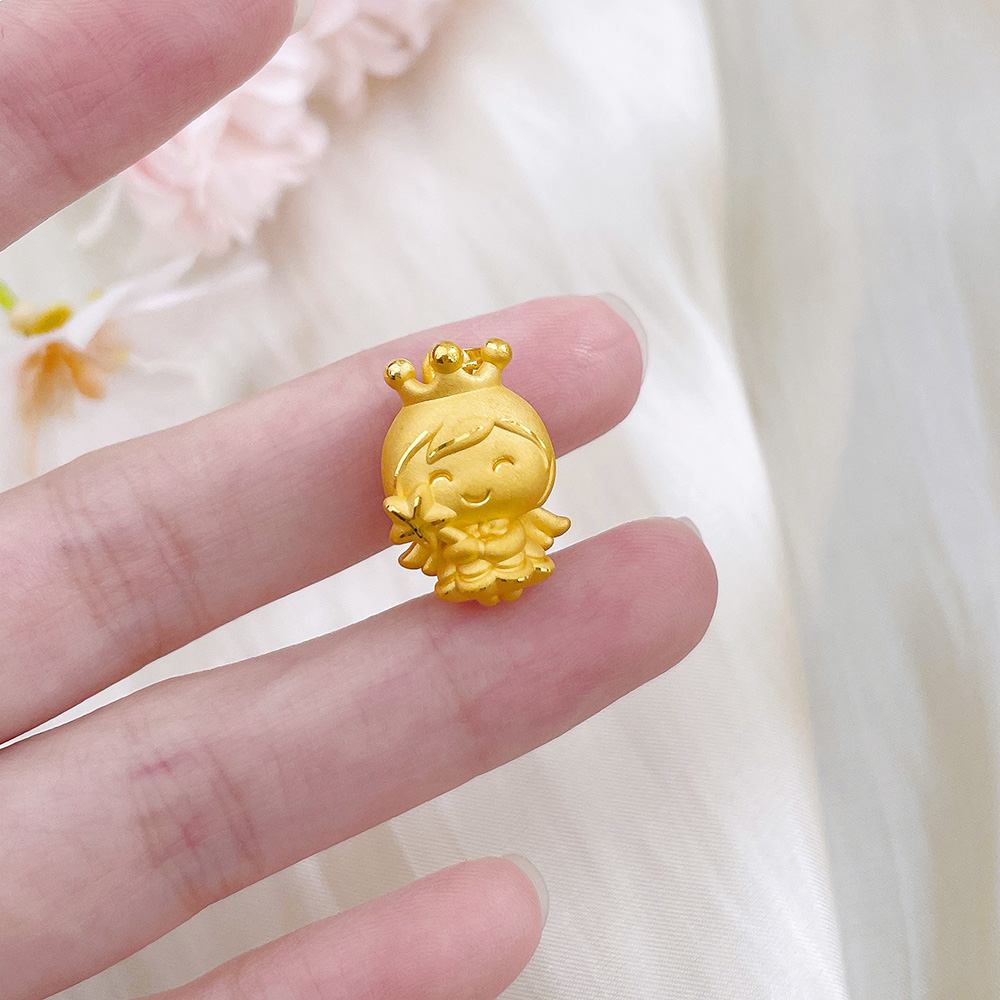 【限时7.5折】【定价黄金】足金 #儿童/宝宝 #卡通 【精品】3D硬金空心天使宝宝吊坠皇冠魔法棒小仙女小天使吊坠(AR3DDZ00155)(预售产品下单后不退款不退货不换货不补差价)