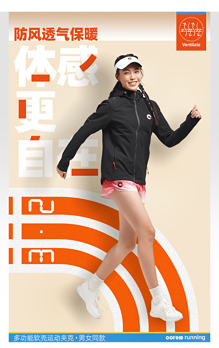 果凡秋冬新款男女同款跑步运动软壳GJB21185