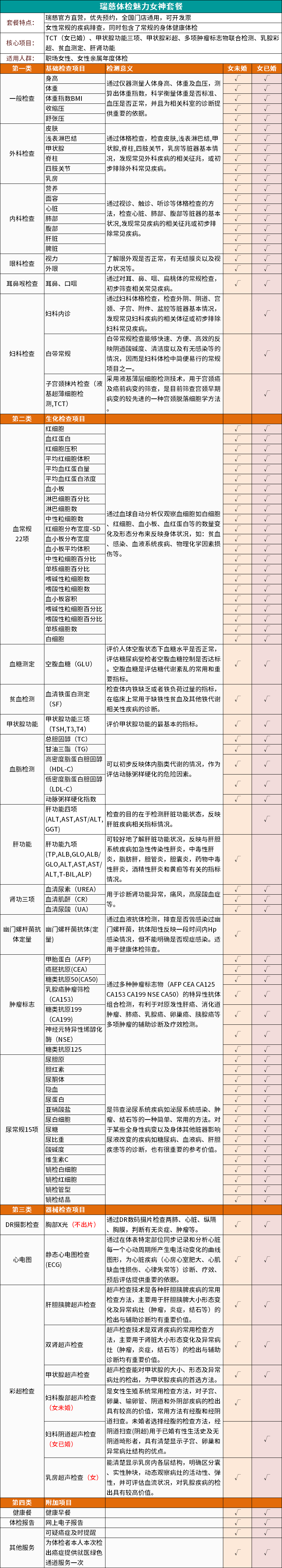 瑞慈体检魅力女神套餐