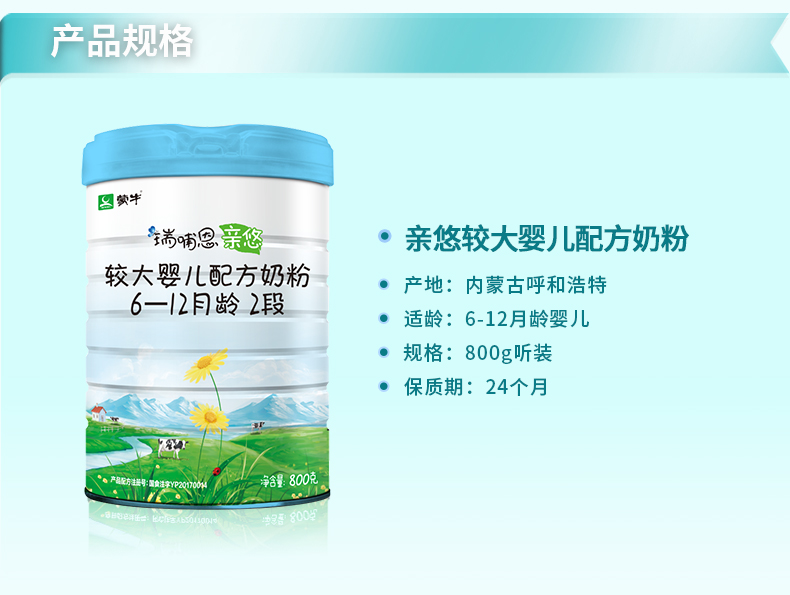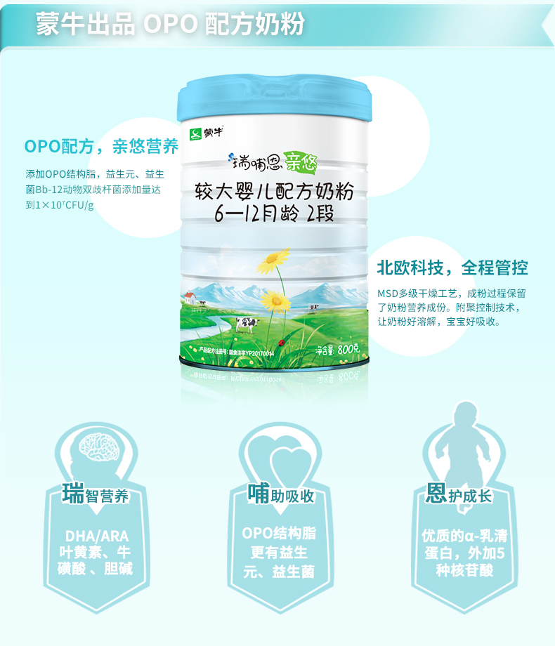 蒙牛瑞哺恩亲悠opo配方奶粉2段婴幼儿奶粉二段800g