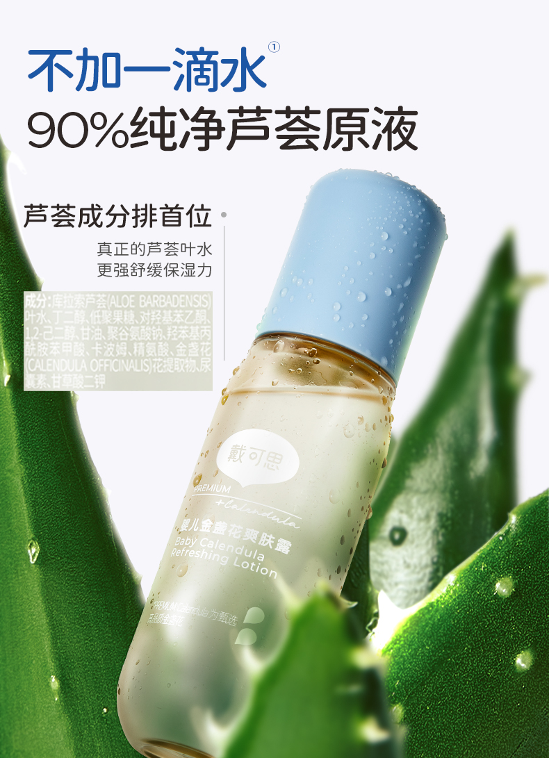 戴可思婴儿液体爽肤露90%芦荟液去痱爽身粉桃子水♥(新老款包装随机发)