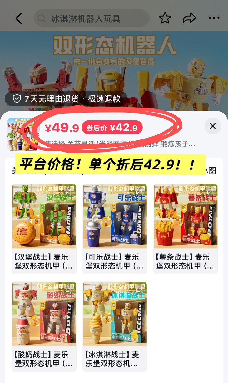📣大品牌凯斯家出品!闭眼入手推荐款‼️ 抖音爆款❗️售价全套💰200多!!! 我们全套只要💰49.9包邮到家🚀 无论自用还是送礼都超划算🔥🔥 装好的时候美食🍟变形了是最强机甲🤖 可玩性超高,和小伙伴玩一个下午不带停! 妥妥的省妈神器来啦😍😍
