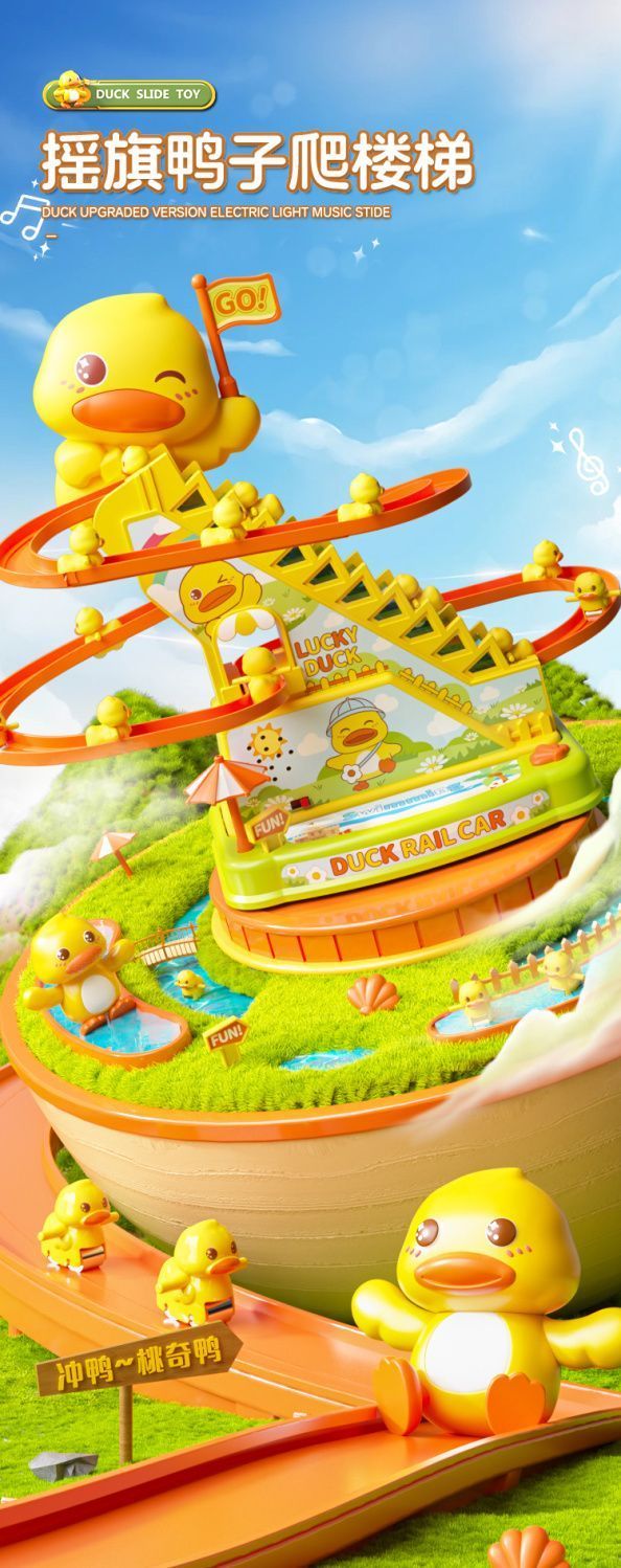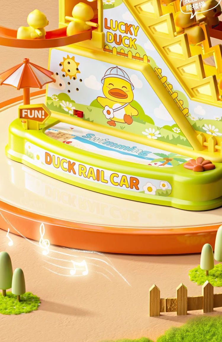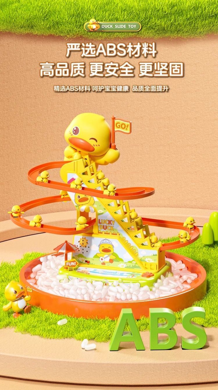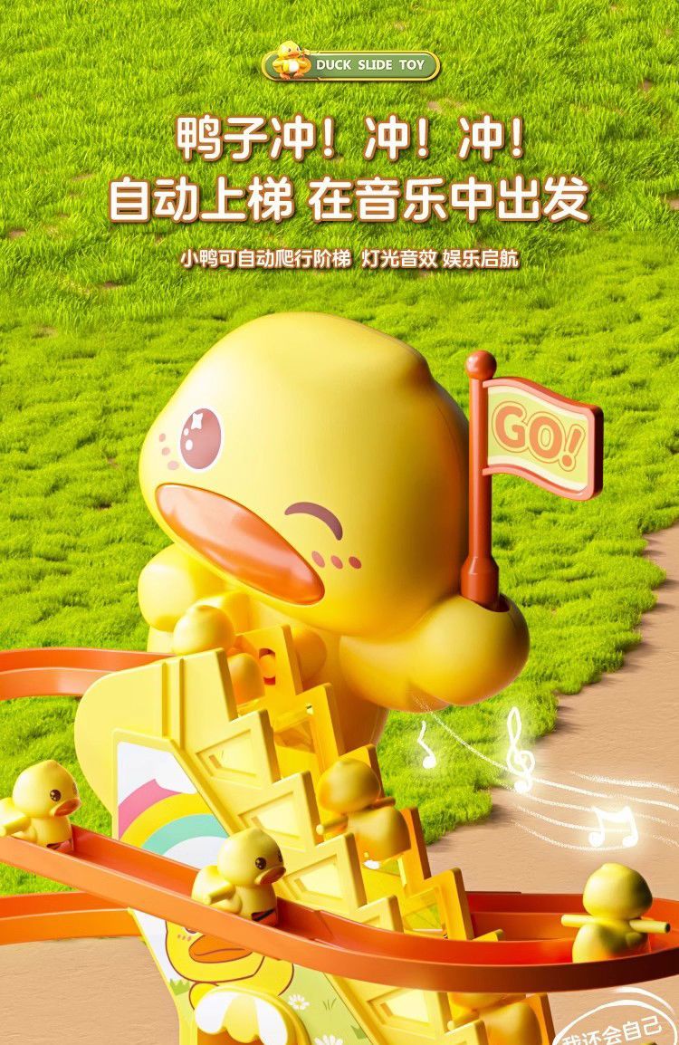 自动爬楼梯小鸭子儿童益智拼装电动轨道车小黄鸭滑滑梯声灯光玩具